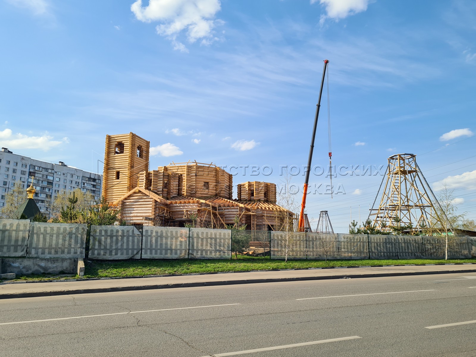 Строительство на Тихорецком бульваре самого большого деревянного храма в централь...