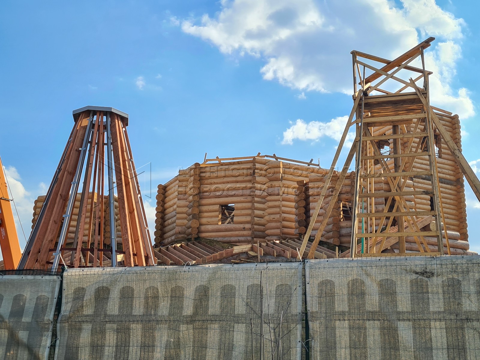 Строительство на Тихорецком бульваре самого большого деревянного храма в централь...
