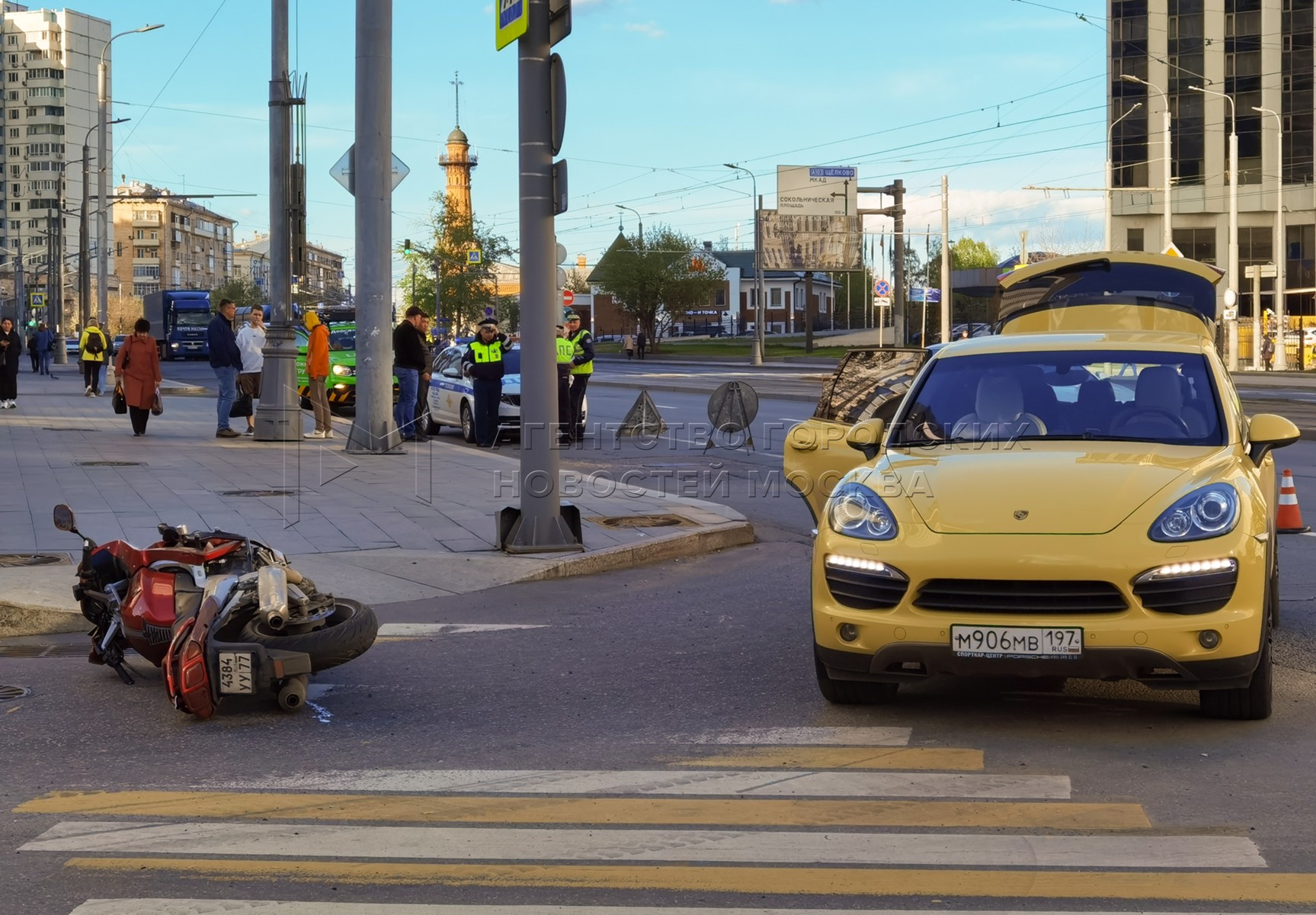 • Заголовок: Последствия ДТП с участием легкового автомобиля и мотоцикла на Русаковской улице