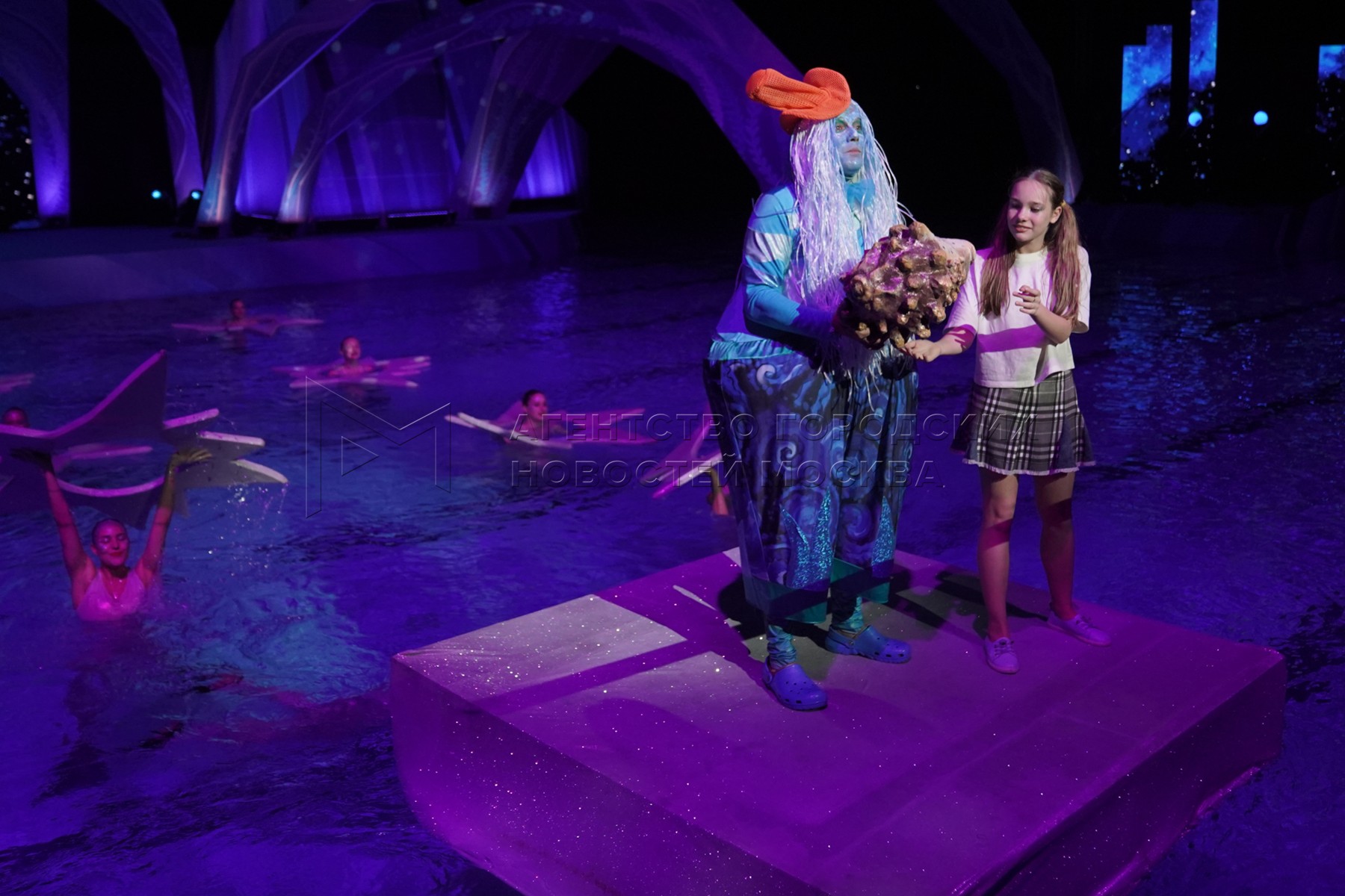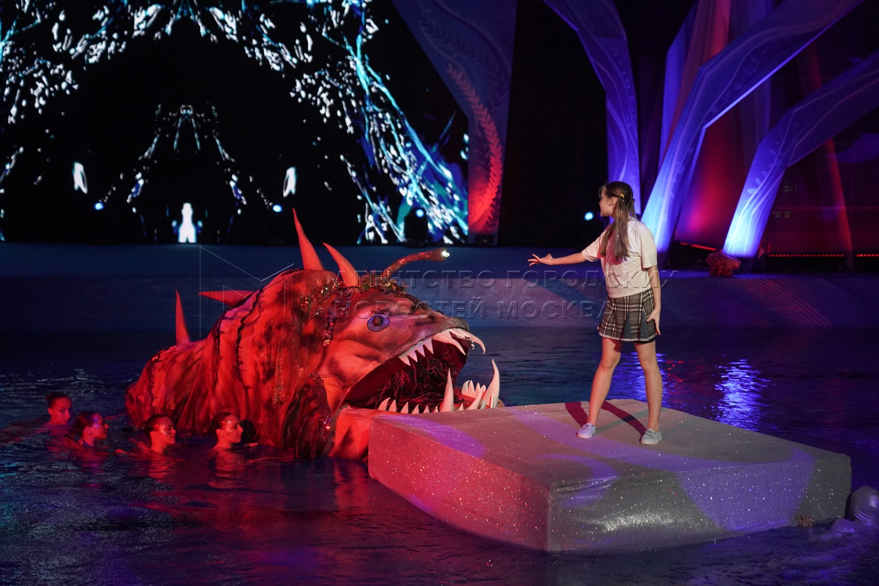 Музыкальный спектакль олимпийской чемпионки по синхронному плаванию Марии Киселевой «Живая вода» во дворце спорта «Динамо» на Водном стадионе.