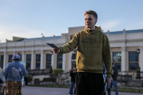 • Описание: Работа волонтеров единого пункта отбора на военную службу по контракту около станции метро «Бульвар Дмитрия Донского».