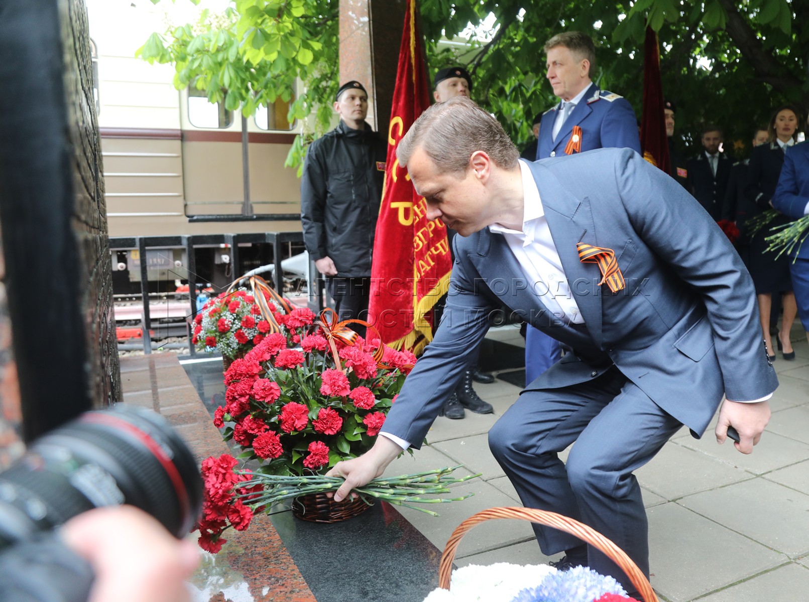 Возложение цветов к обелиску воинам-метрополитеновцам в честь Дня Победы на терри...