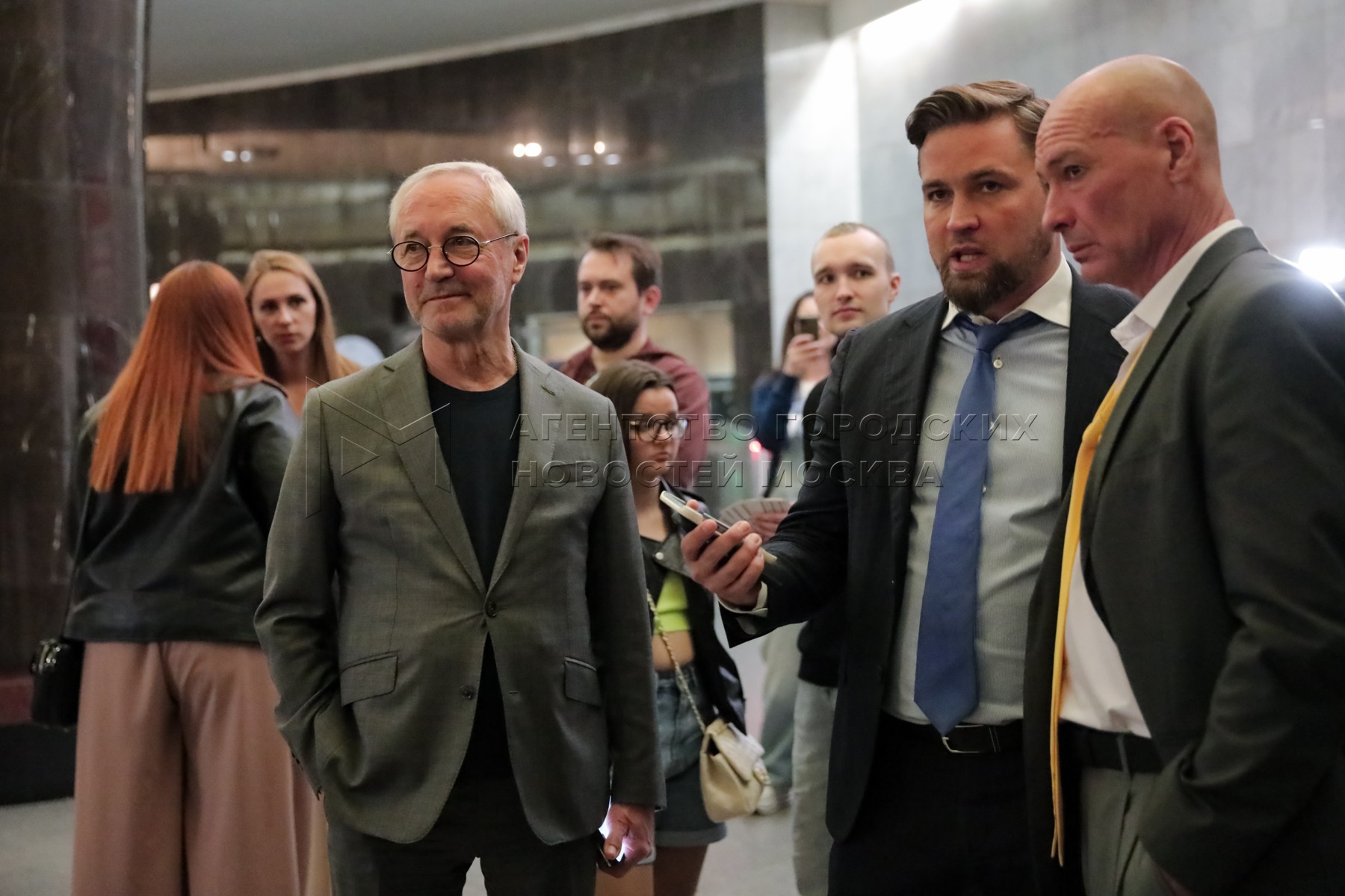 Актер, исполнитель роли Владимира Маяковского – Александр Песков (справа) перед п...