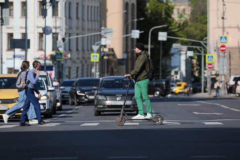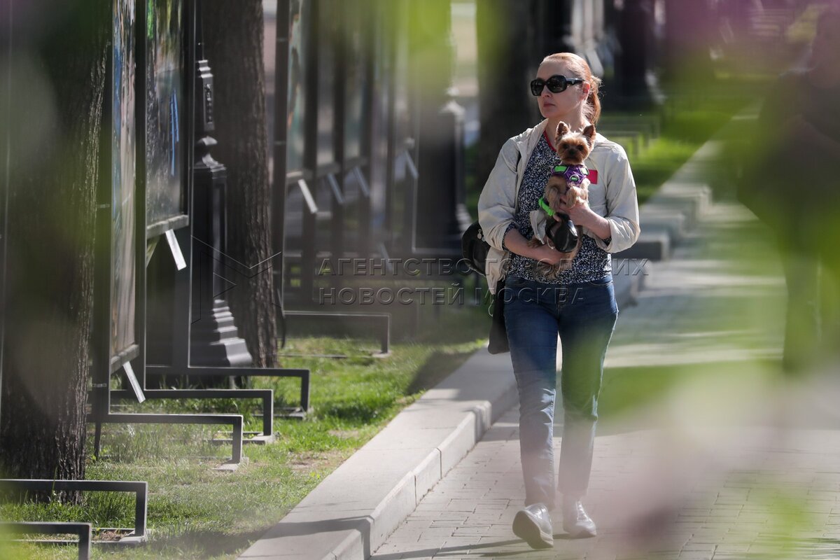 Городские жанры и виды. Собака породы «Венгерская выжгла» (в центре) на прогулке.
