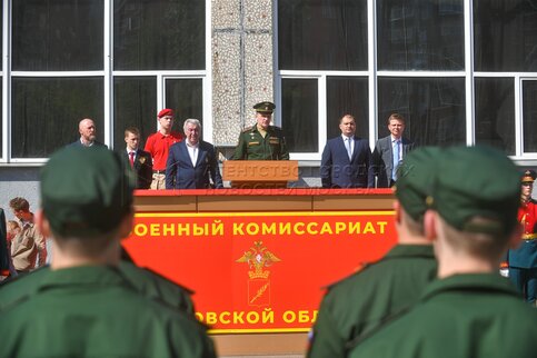Торжественная отправка молодых спортсменов - кандидатов и членов сборных команд по олимпийским видам спорта - на военную службу в спортивных ротах ЦСКА.