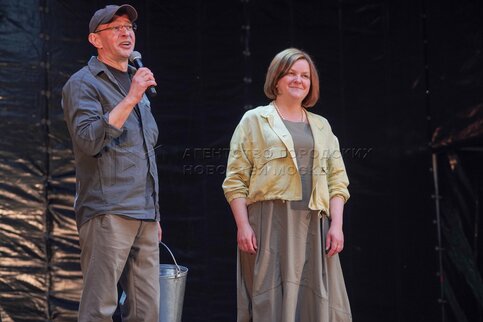 Актер Иван Дергачев (справа) во время показа спектакля «Ландшафтный театр» от арт...