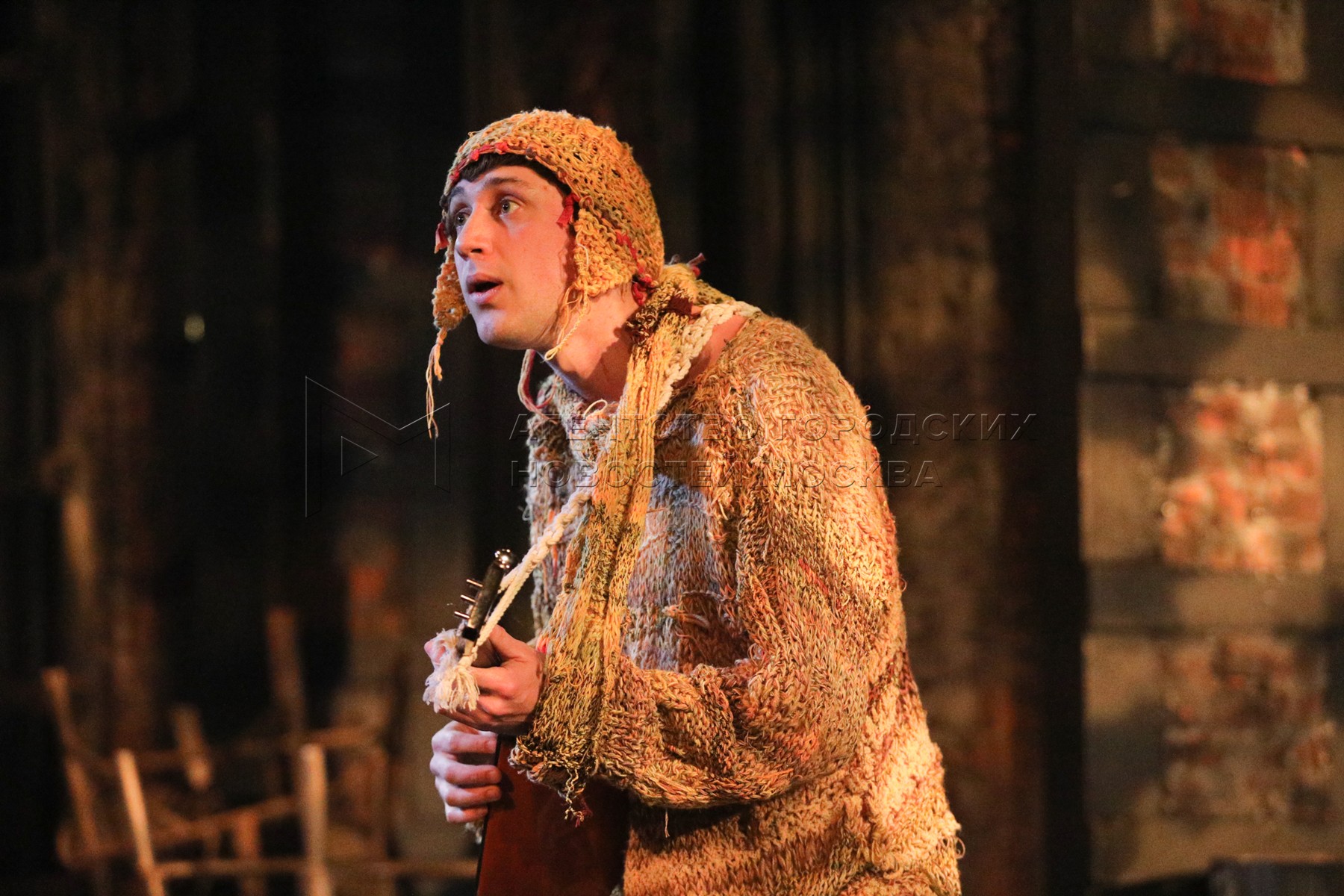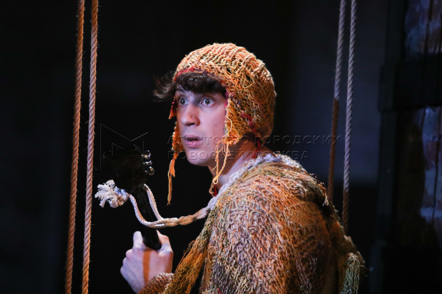 • Описание: Актер Виталий Иванов в роли Васьки во время показа спектакля «Нахлебник» в постановке Анны Горушкиной в Государственном академическом театре имени Вахтангова.