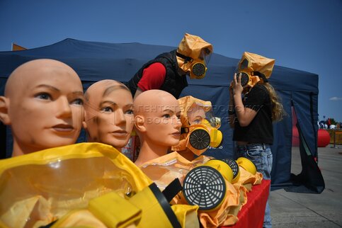 Демонстрация работы пожарно-спасательных мотоциклистов и спасателей-альпинистов п...