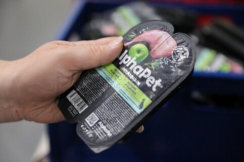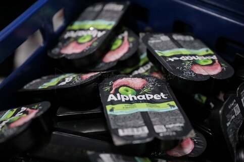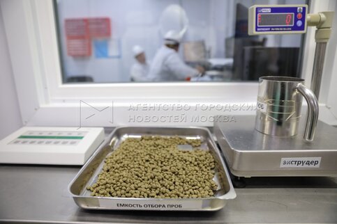 Производство кормов для домашних животных на заводе AlphaPet в Московской области...
