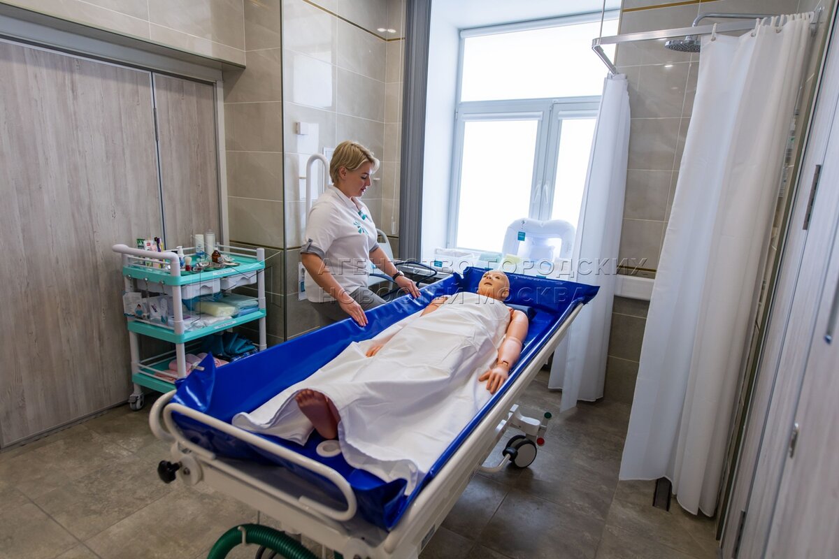 - Описание: Симуляционный центр обучения навыкам профессионального ухода на базе научно-практического геронтопсихиатрического центра в Южнопортовом районе. Фото: Владимир Новиков, пресс-служба мэра и правительства Москвы.
