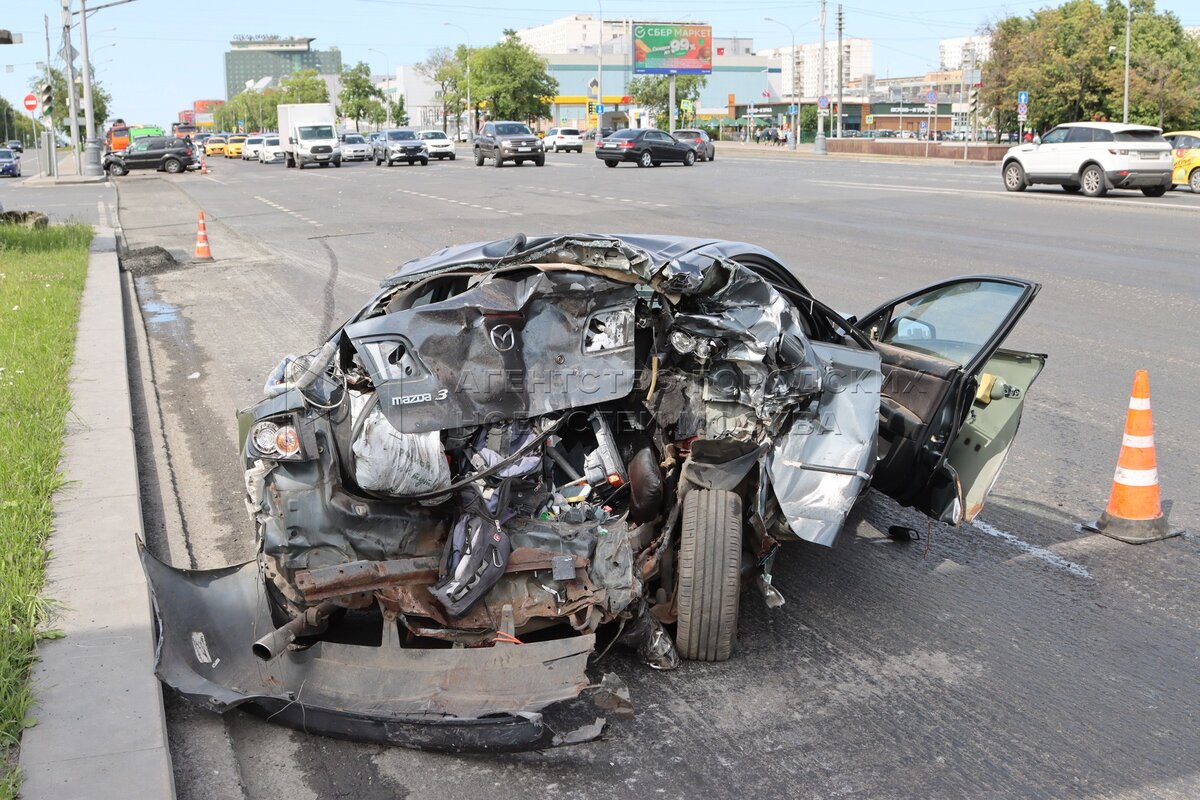 • Описание: Последствия ДТП на Каширском шоссе в районе станции метро «Домодедовская» на юге Москвы.