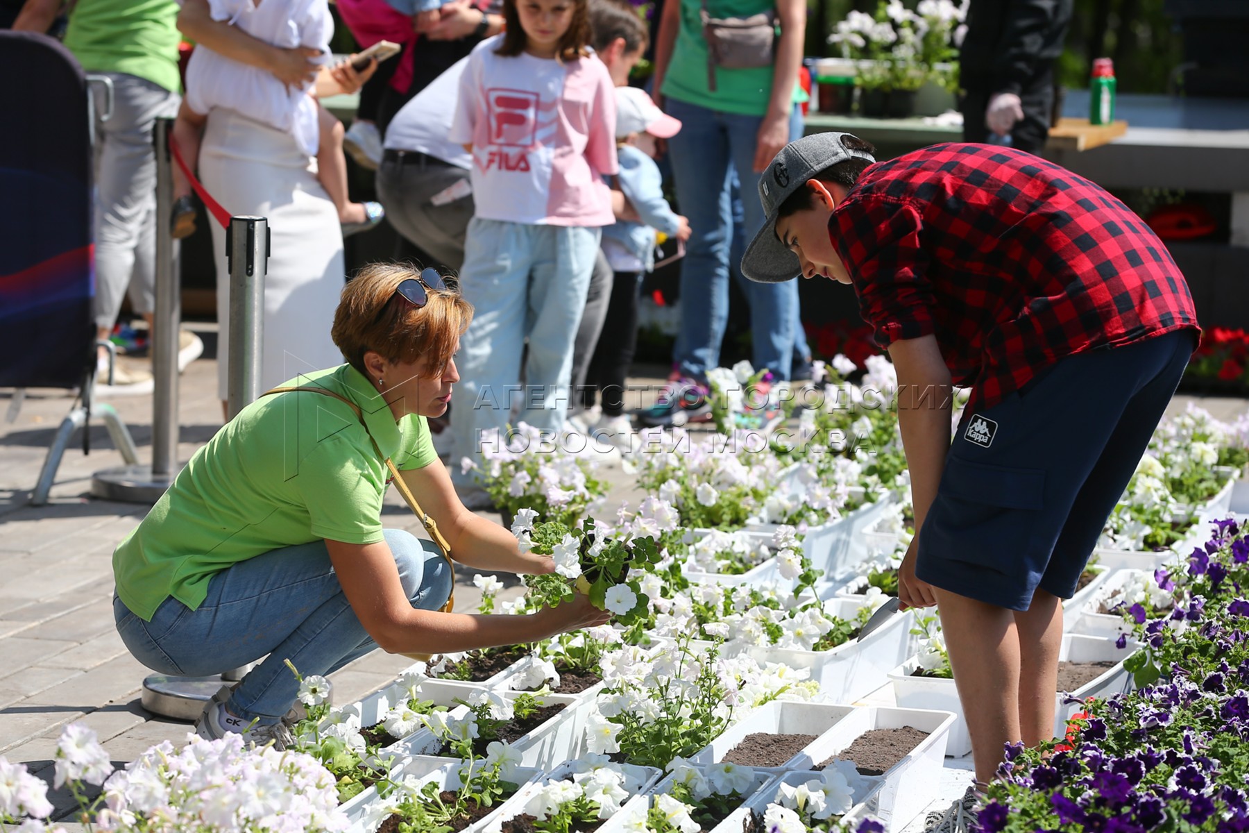 • Заголовок: Создание самого большого флага России из живых цветов у подножия канатной дороги на Воробьевых горах