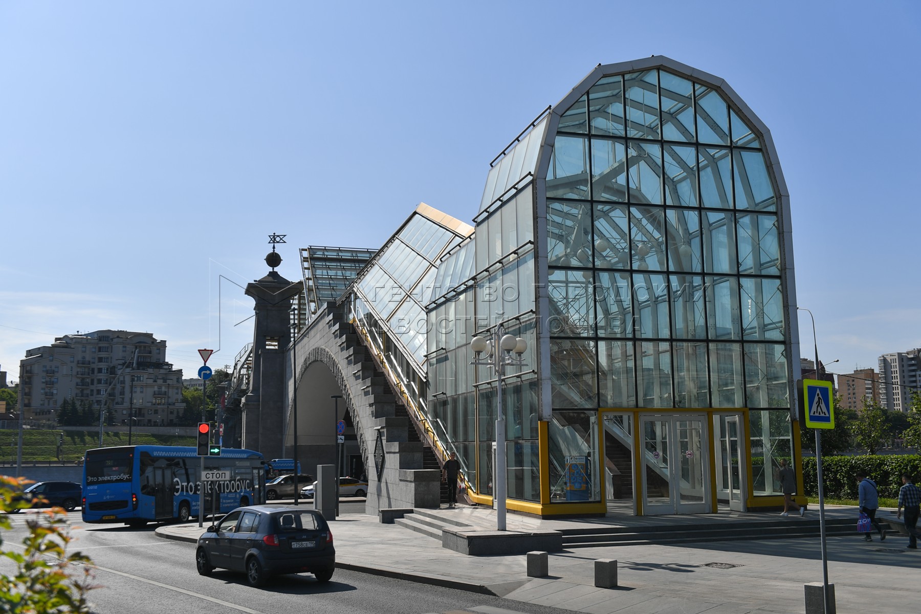 • Описание: Промывка стекол на пешеходном мосту Богдана Хмельницкого через Москву-реку, соединяющем Бережковскую и Ростовскую набережные вблизи Киевского вокзала.
