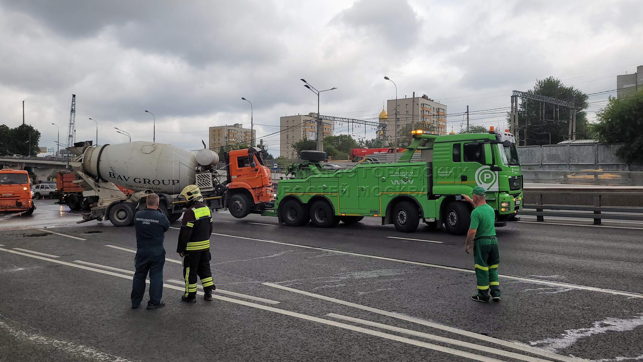 Последствия опрокидывания бетономешалки на ул. Нижегородская в районе д. 52.