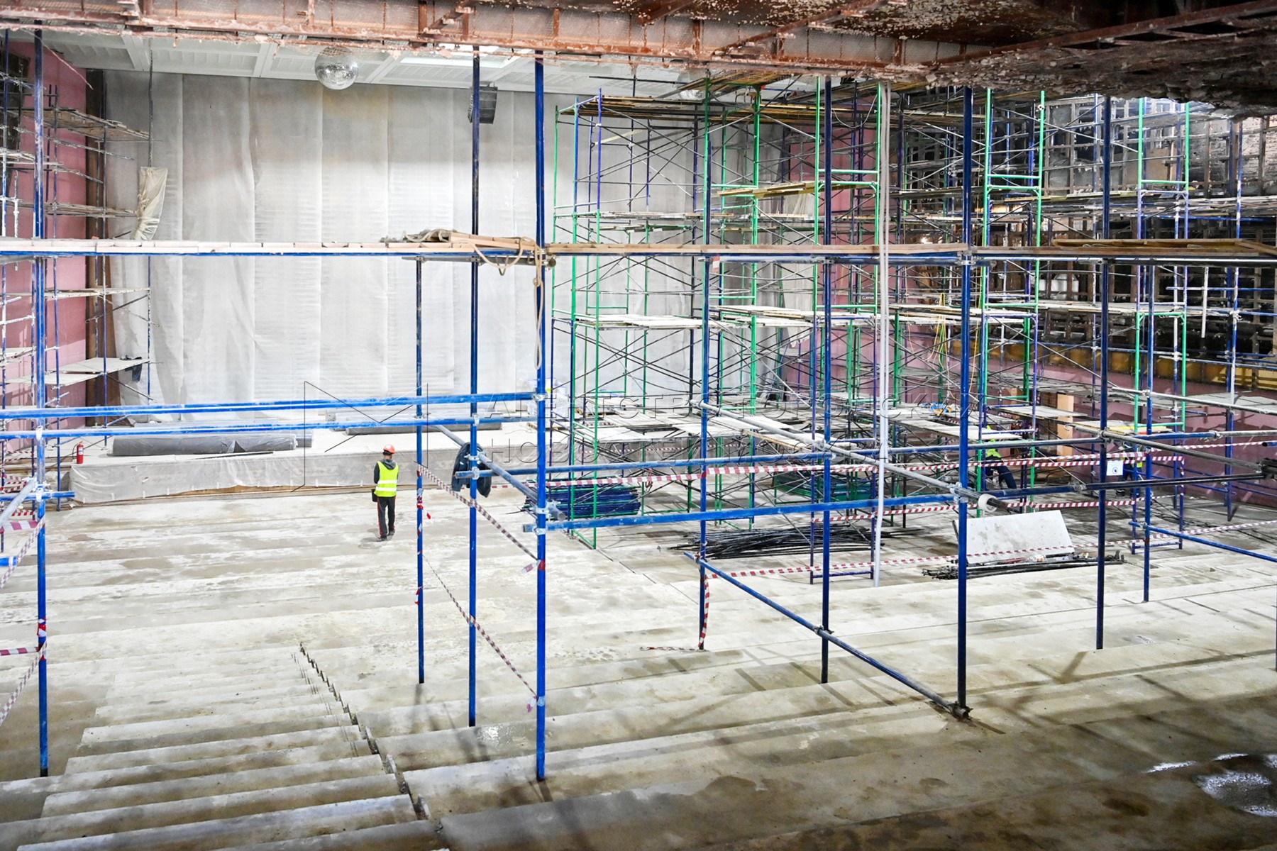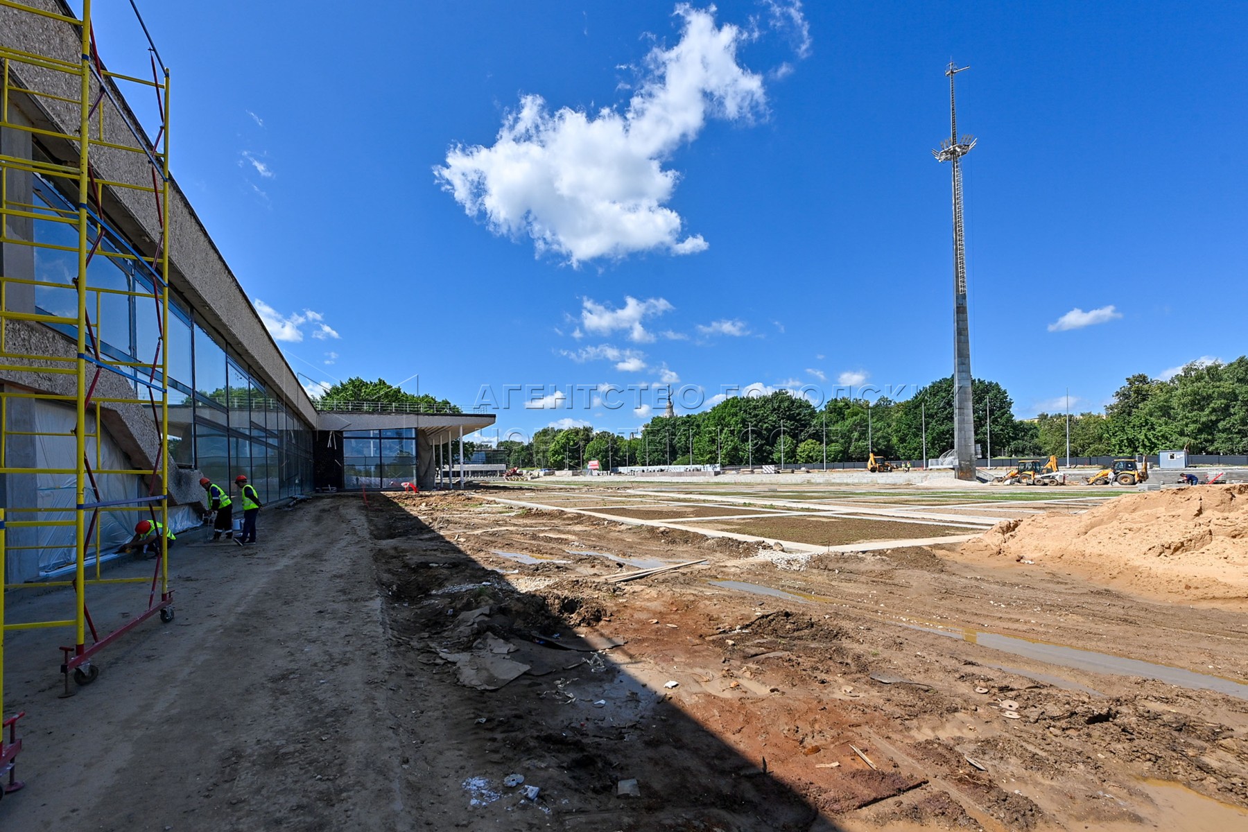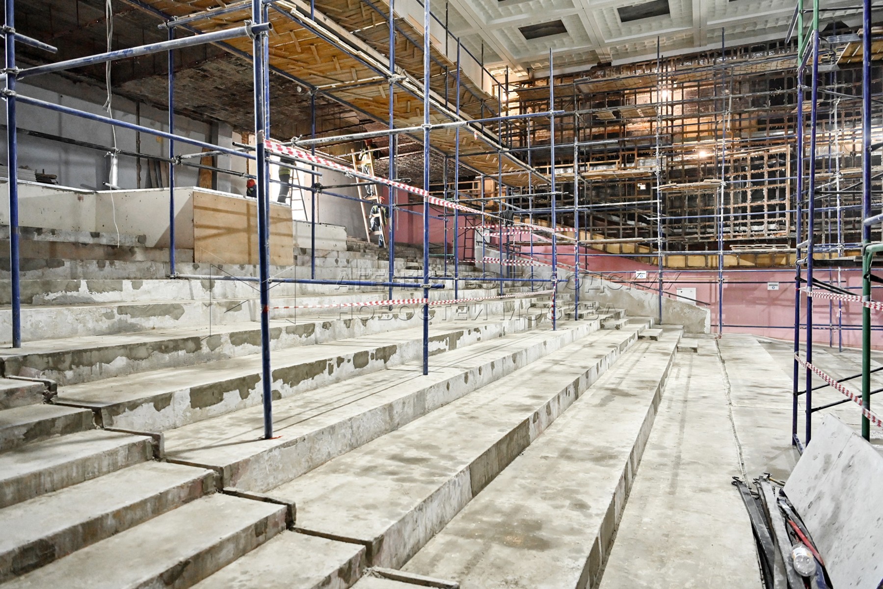 Ход реставрации исторических зданий Дворца пионеров на Воробьевых горах и комплек...
