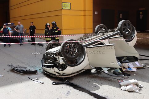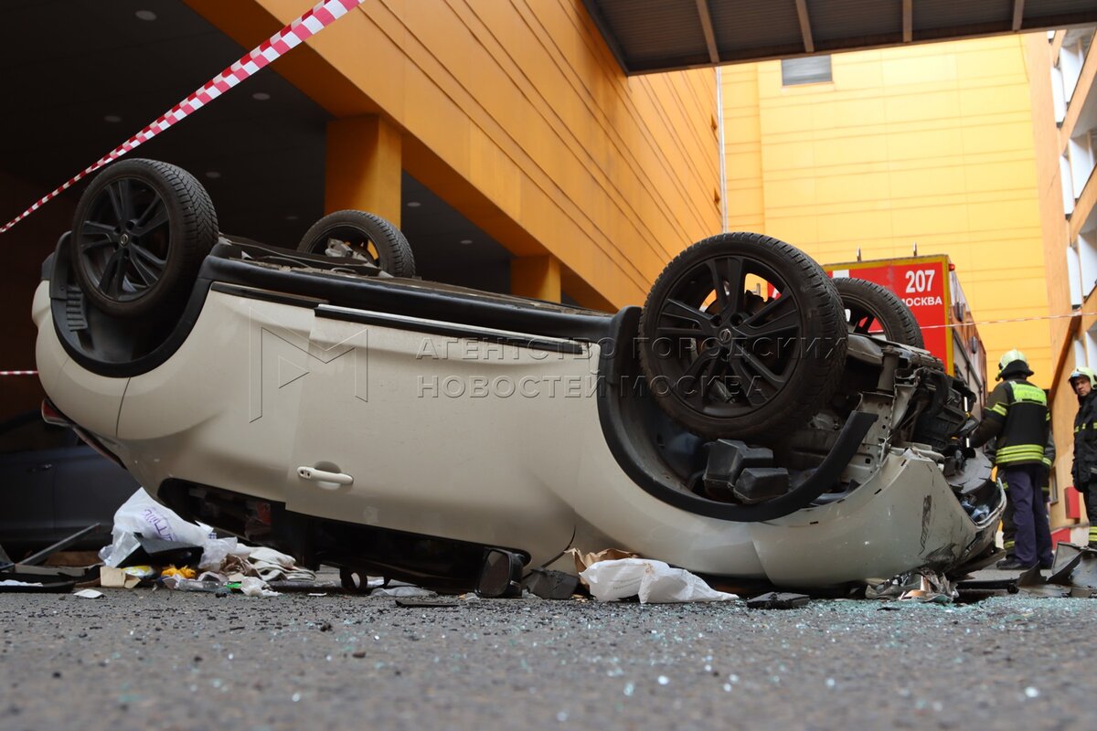 • Заголовок: Последствия падения автомобиля со второго этажа паркинга в торговом центре на западе Москвы