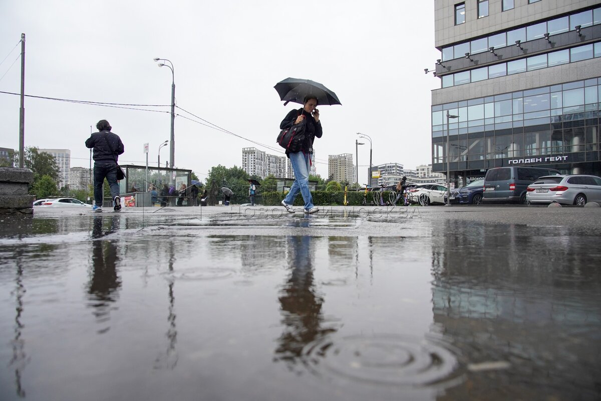 Дождливая погода в Москве. Вид на Международный деловой центр «Москва-Сити».