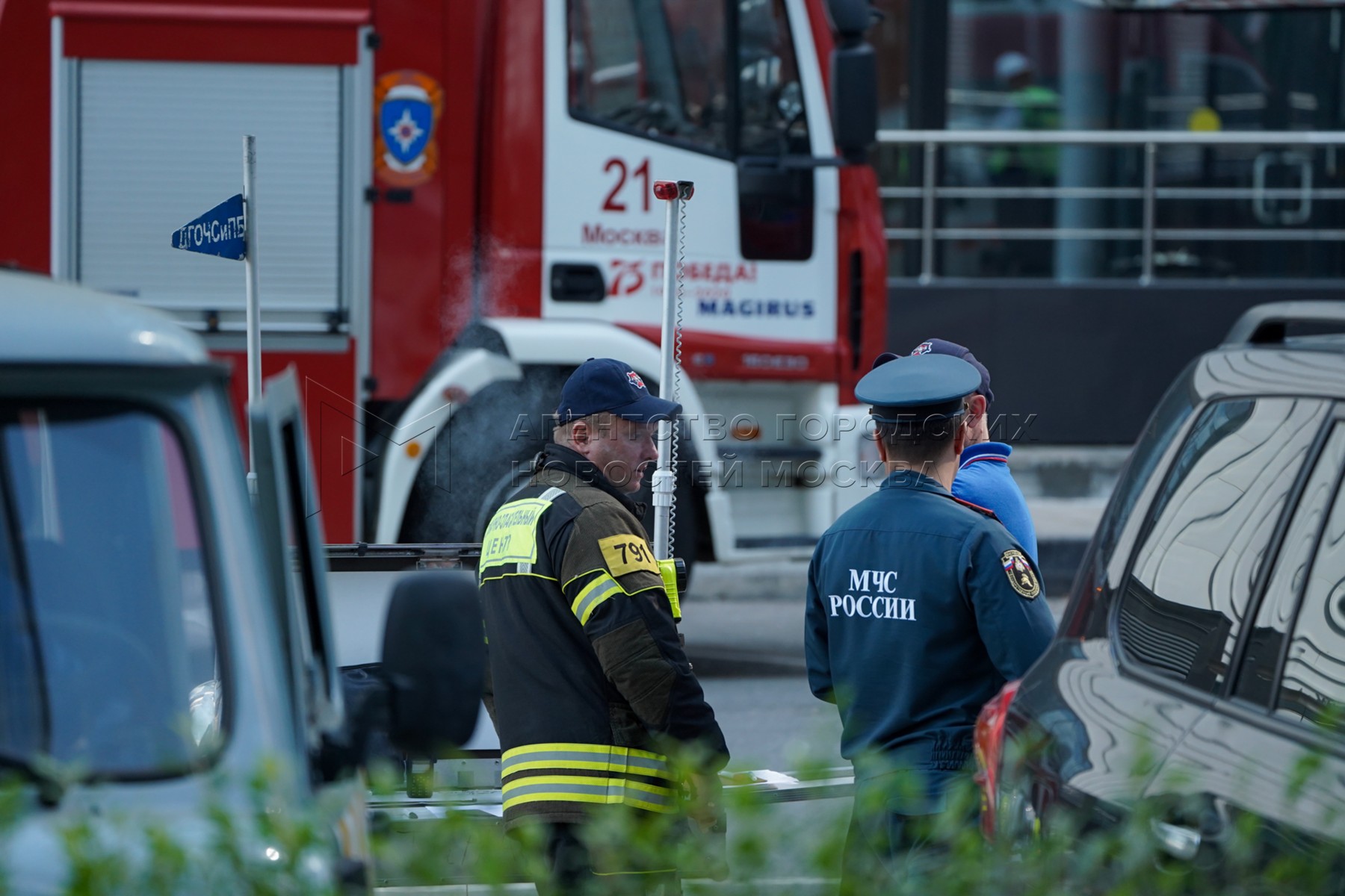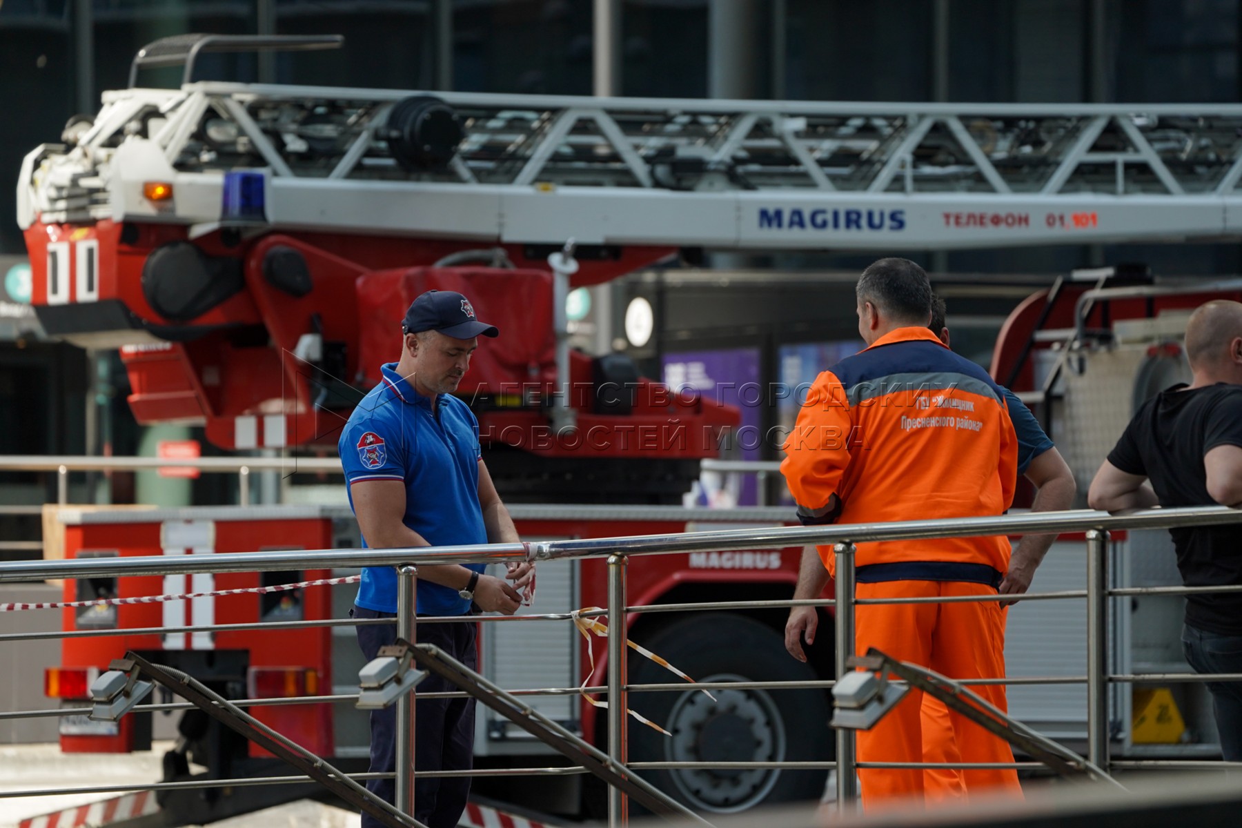 • Описание: Обстановка на месте попадания беспилотного летательного аппарата (БПЛА) в одну из башен «Москва-Сити».