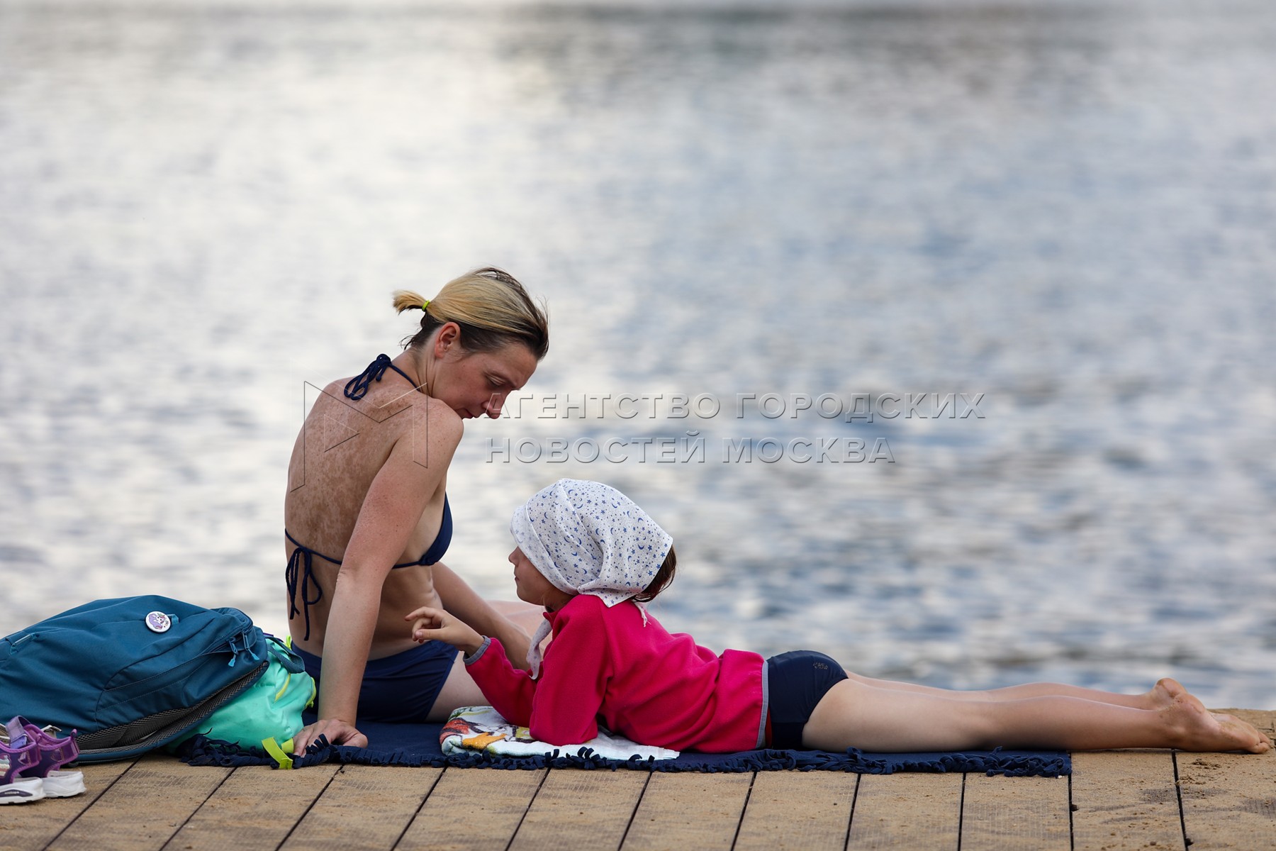 Отдых у воды в жаркую погоду в парке «Северное Тушино».