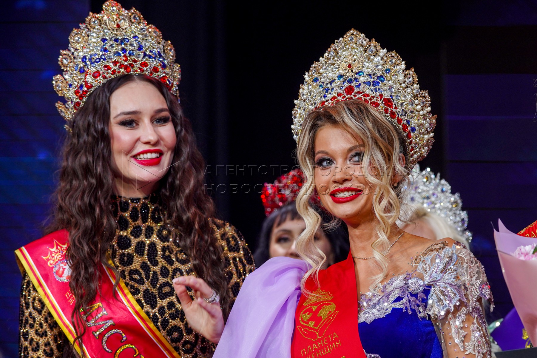 Победительница XXII Всероссийского конкурса красоты «Миссис Россия - 2022» Нина Банная (слева) и победительница конкурса «Миссис Россия - 2023» Жанна Специальная во время финала Всероссийского конкурса красоты «Миссис Россия 2023».