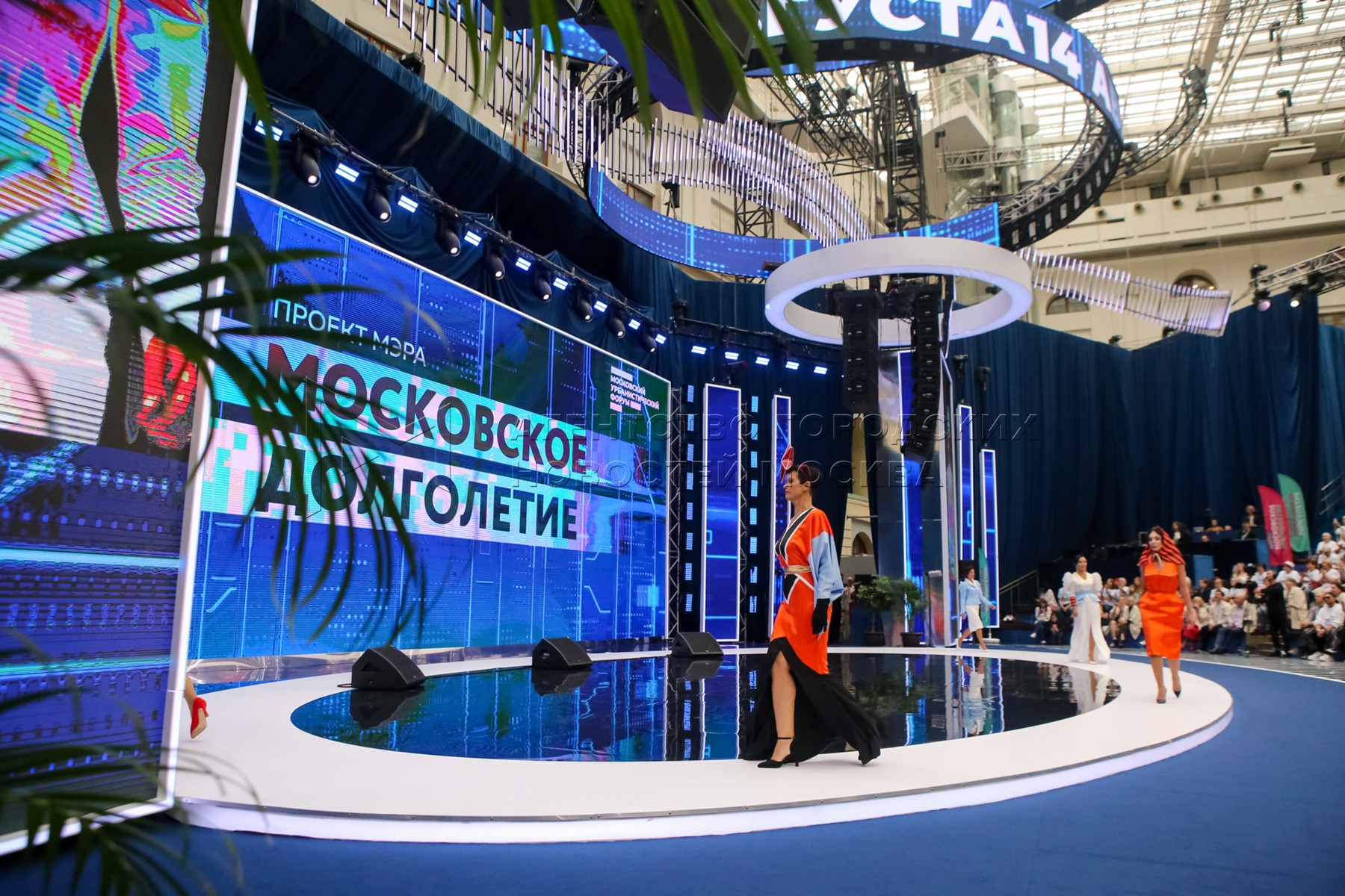 Показ авторских коллекций одежды, созданных участниками «Московского долголетия» в рамках Московского урбанистического форума.