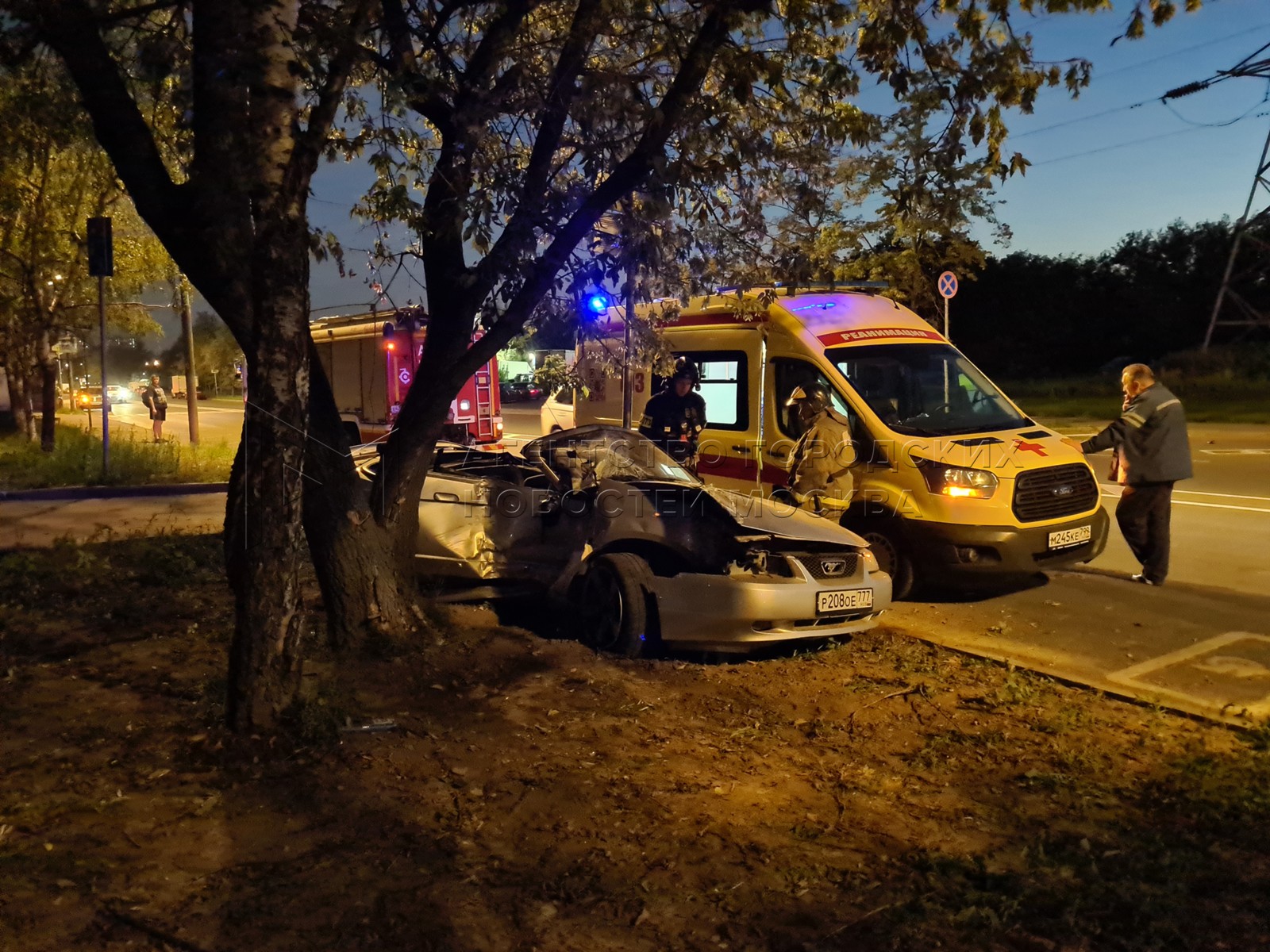 • Заголовок: Последствия столкновения кабриолета Ford Mustang с деревом на Подольской улице