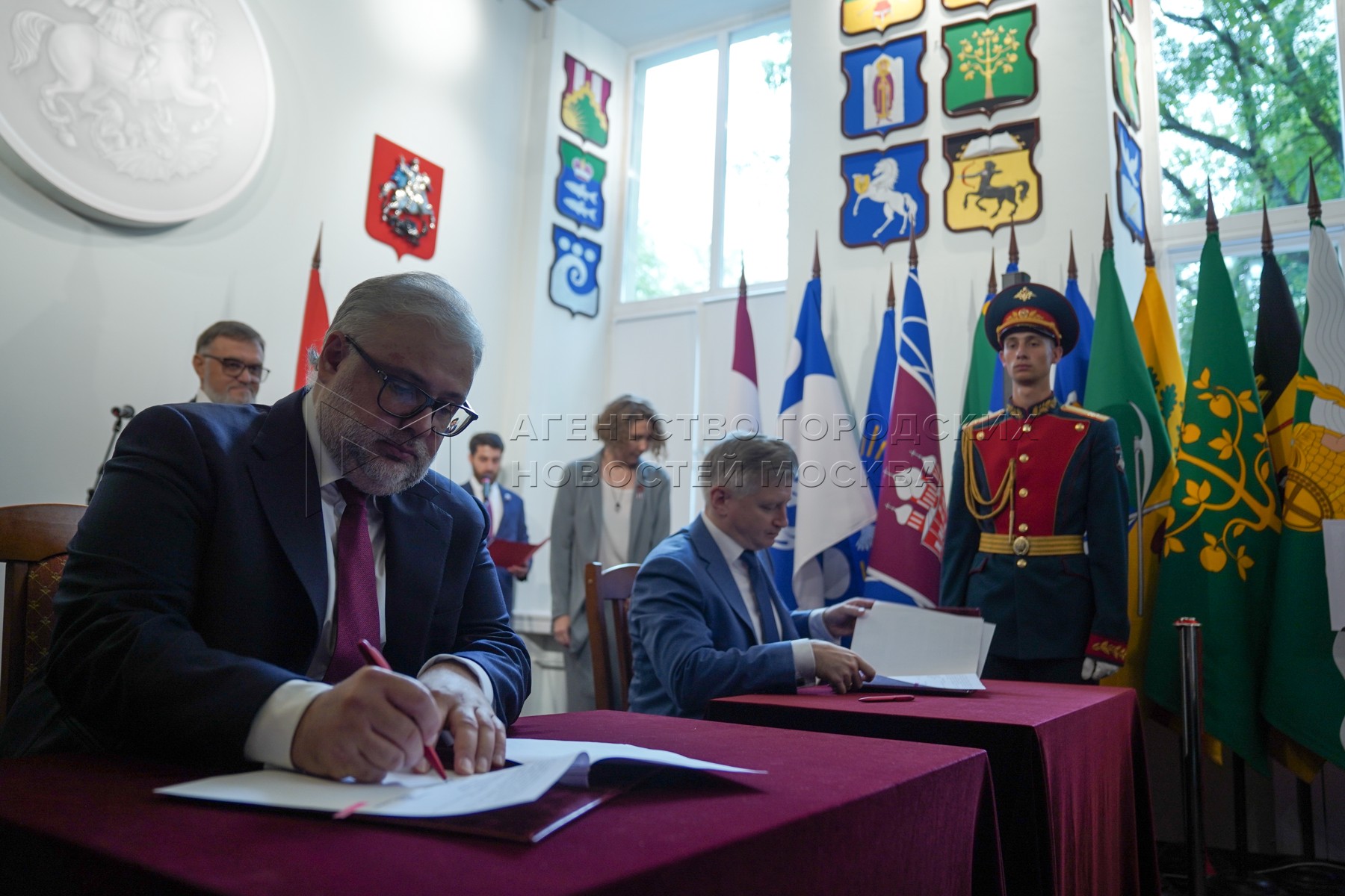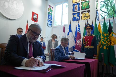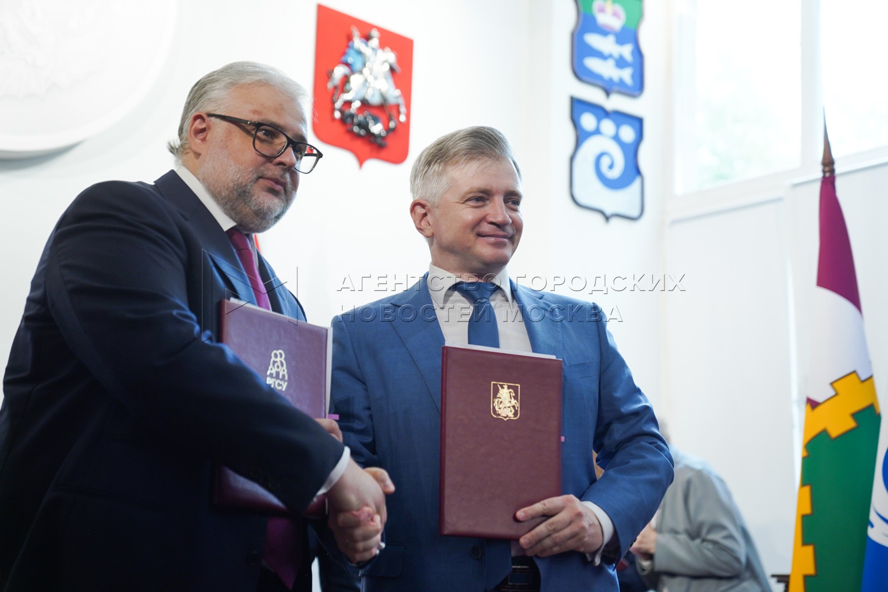 Ректор РГСУ Андрей Хазин (слева) и руководитель Департамента культуры города Моск...