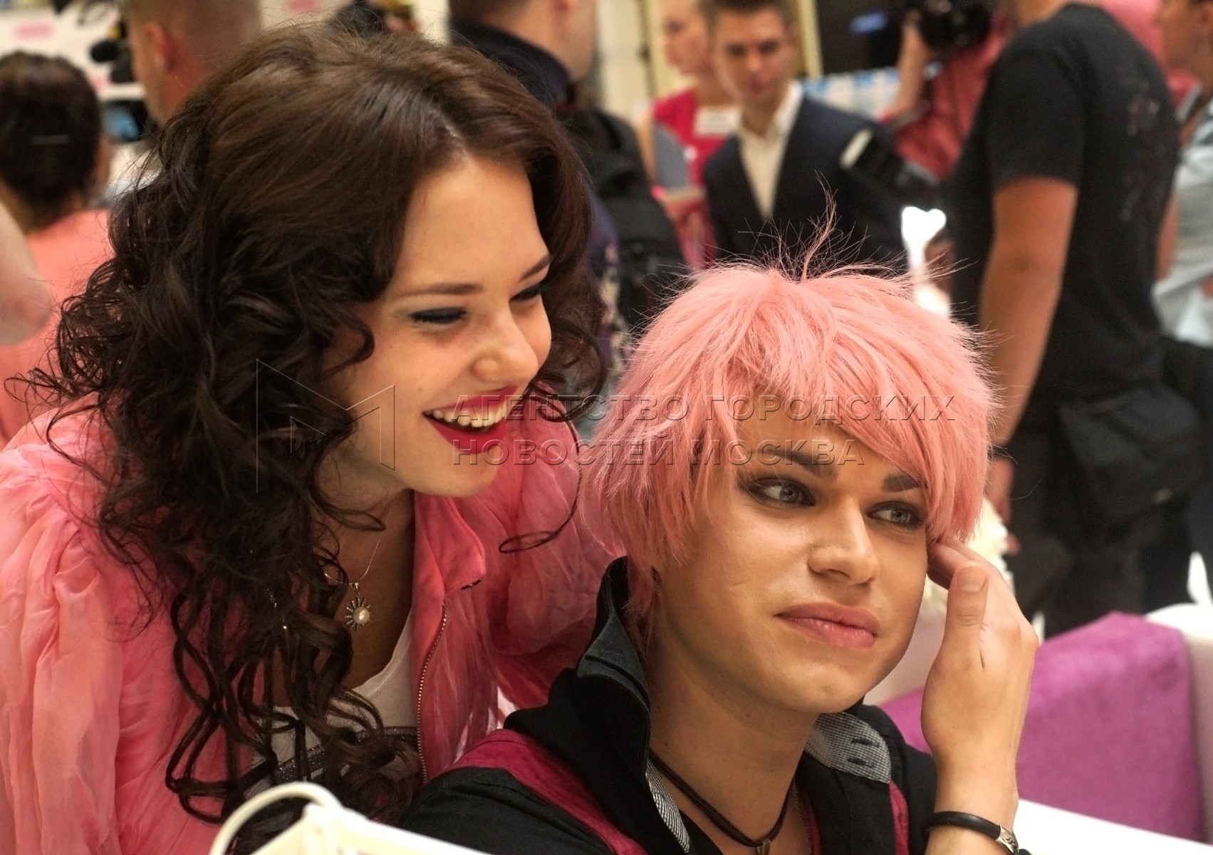 • Описание: Владелица сети Студий маникюра Лена Ленина во время праздника розового цвета.