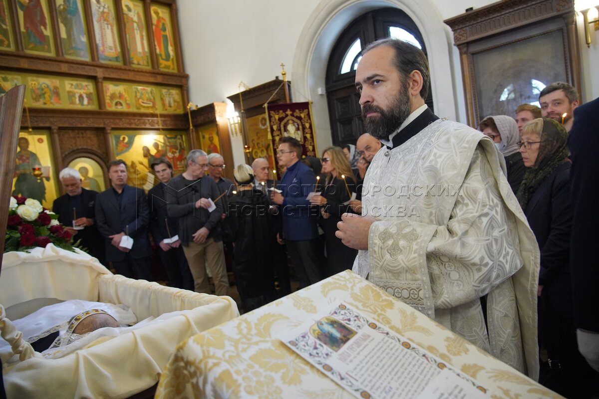 Актер Михаил Горевой (в центре) во время гражданской панихиды и церемонии прощани...