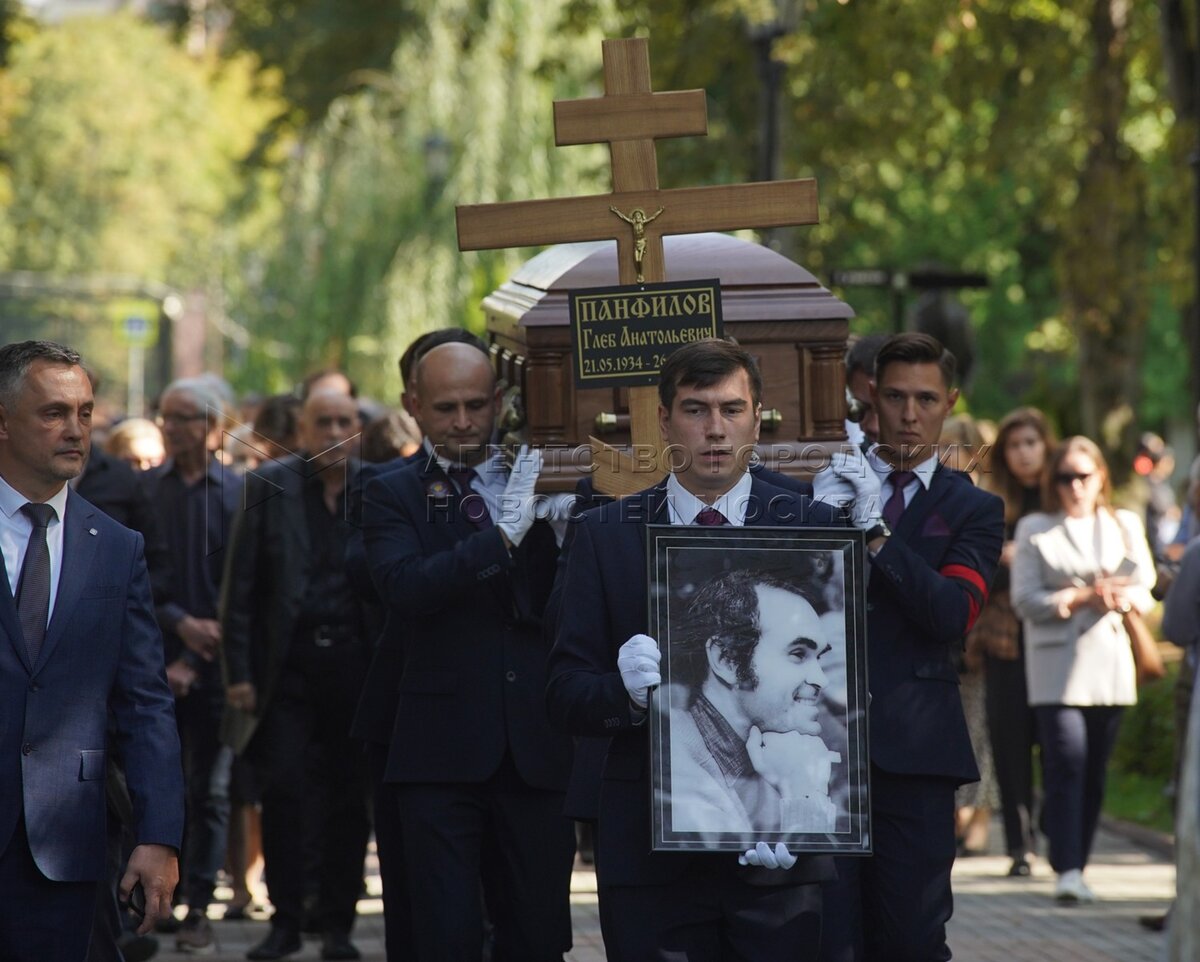 Катафалк с телом народного артиста РСФСР, режиссера Глеба Панфилова после граждан...