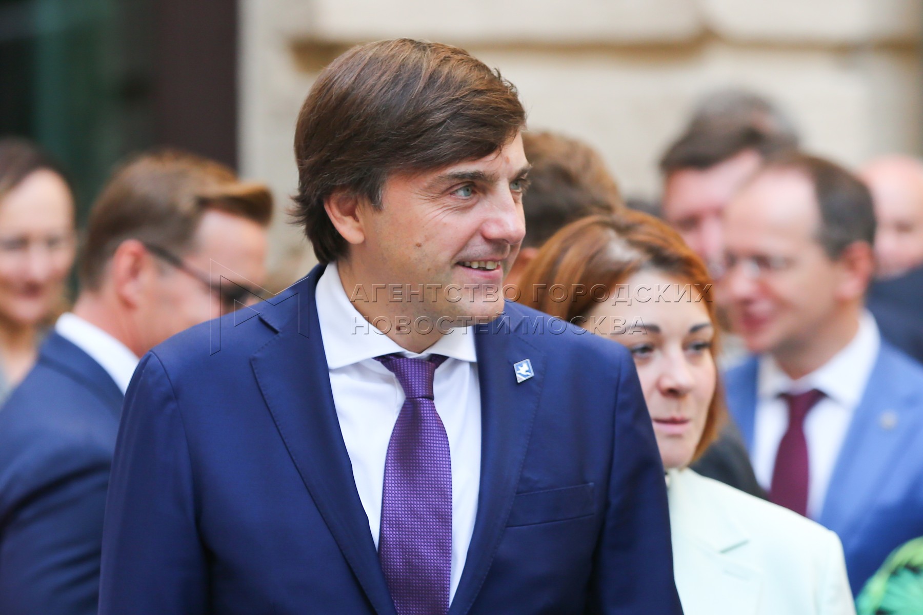 • Описание: Министр просвещения РФ Сергей Кравцов на торжественной линейке ко Дню знаний в московской школе №1529 имени Грибоедова по адресу: Староконюшенный пер., д. 18.