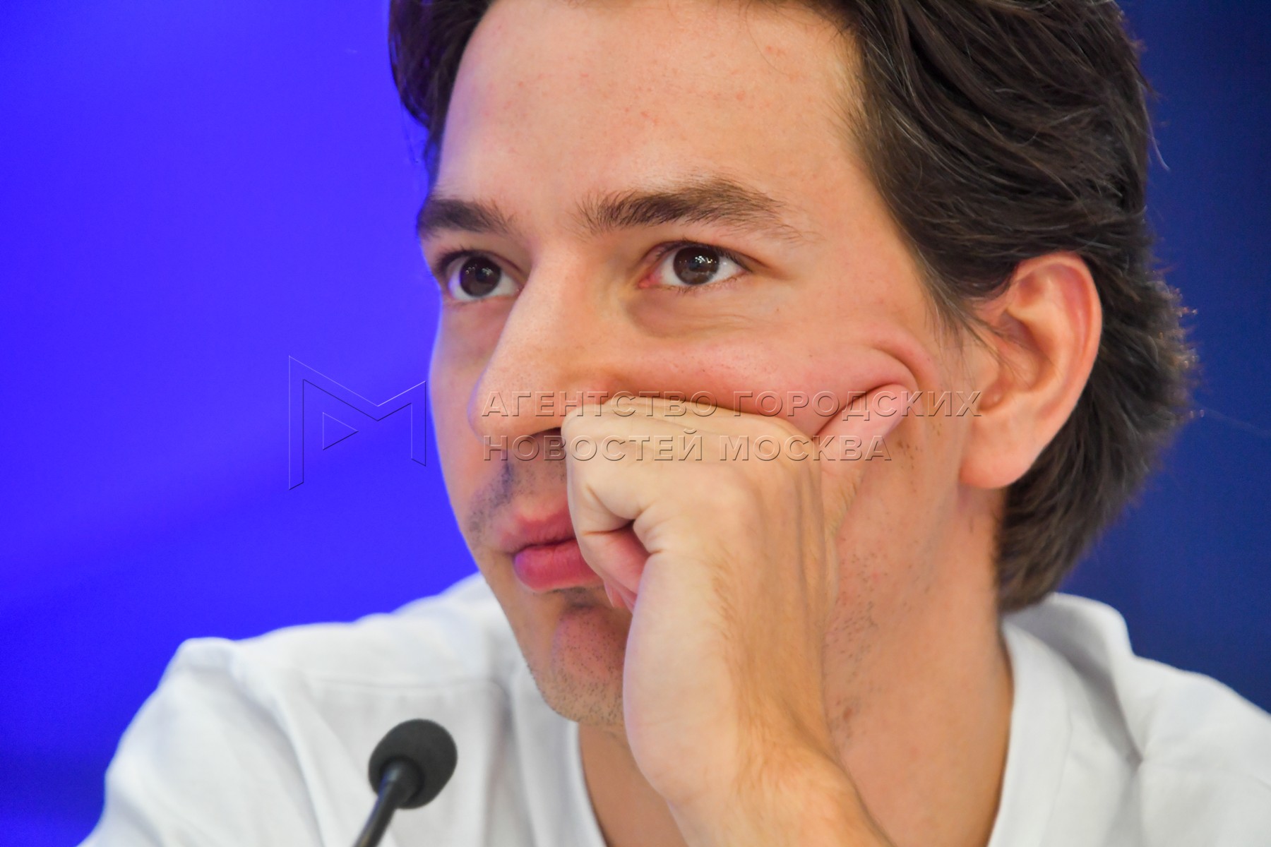 Актер Богдан Жилин во время пресс-конференции, посвященной открытию сезона Театра на Бронной.