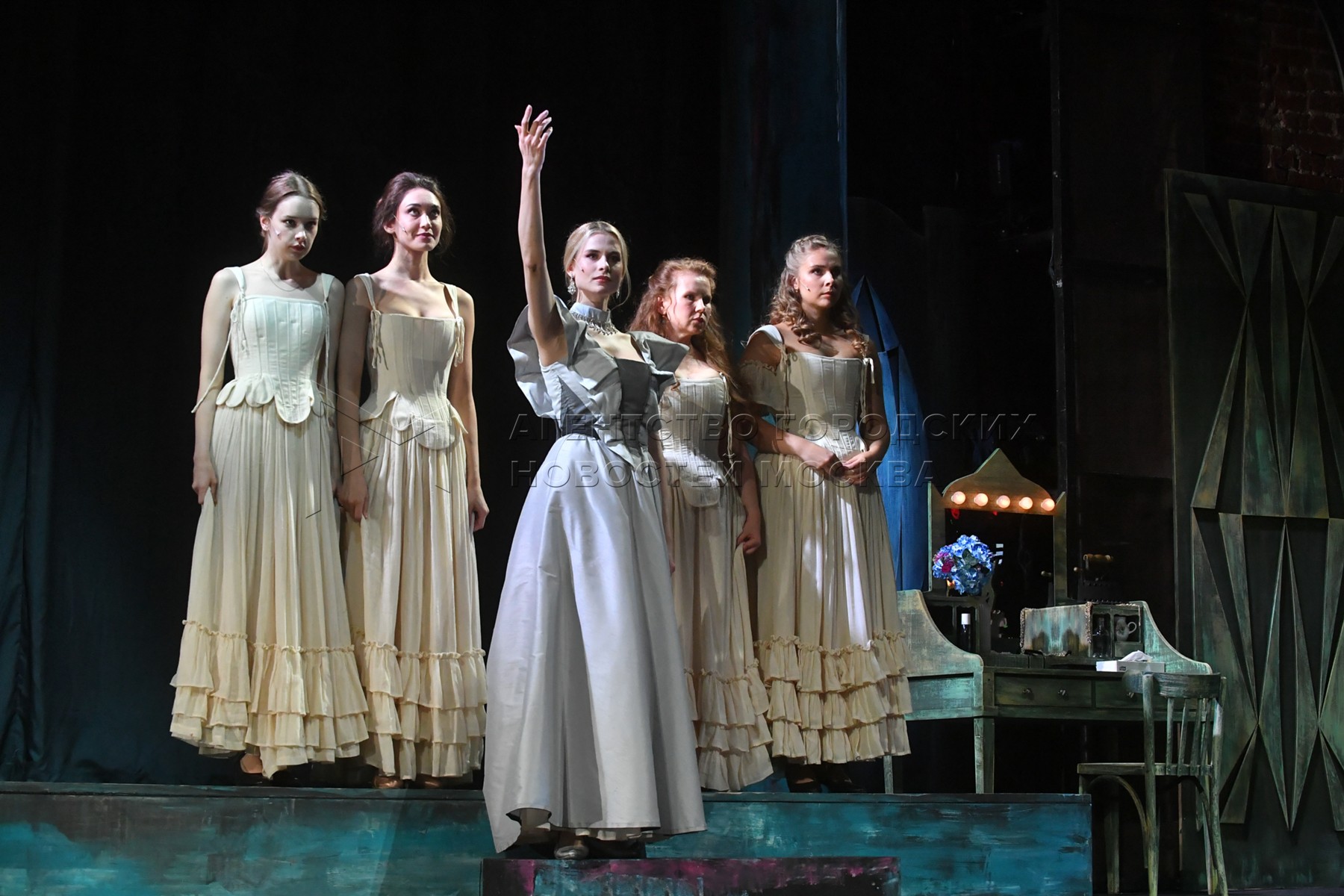 • Описание: Актриса Варвара Комарова в роли Зины (на первом плане) во время пресс-показа премьерного спектакля «Дядюшкин сон» в Московском драматическом театре имени Гоголя.