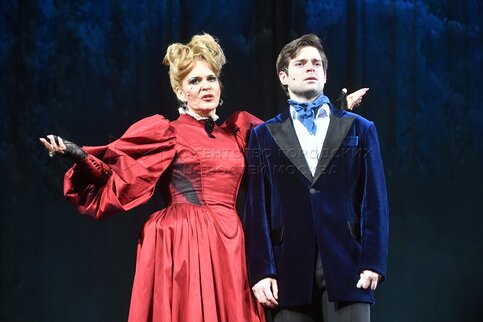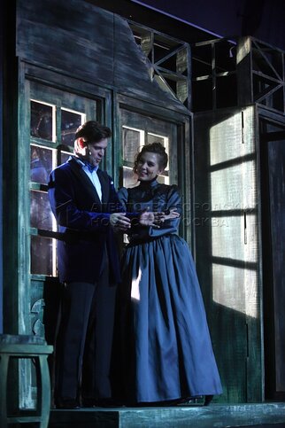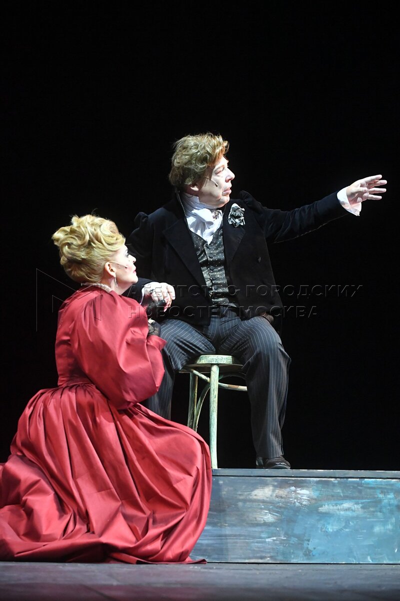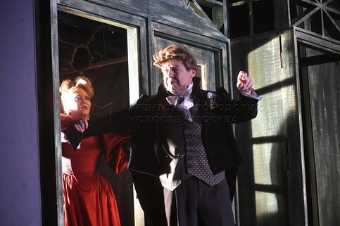 • Описание: Актеры Кирилл Ковбас в роли Мозглякова и Варвара Комарова в роли Зины во время пресс-показа премьерного спектакля «Дядюшкин сон» в Московском драматическом театре имени Гоголя.