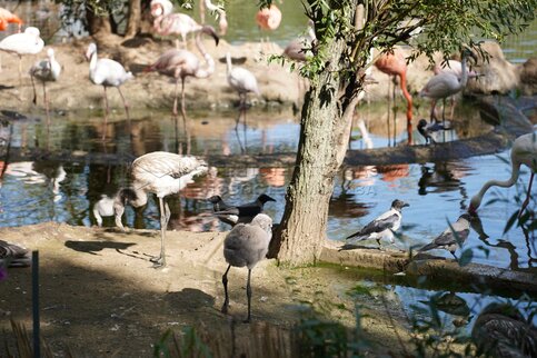 В Московском зоопарке с мая появились на свет 11 птенцов фламинго. Фото: пресс-служба Московского зоопарка.