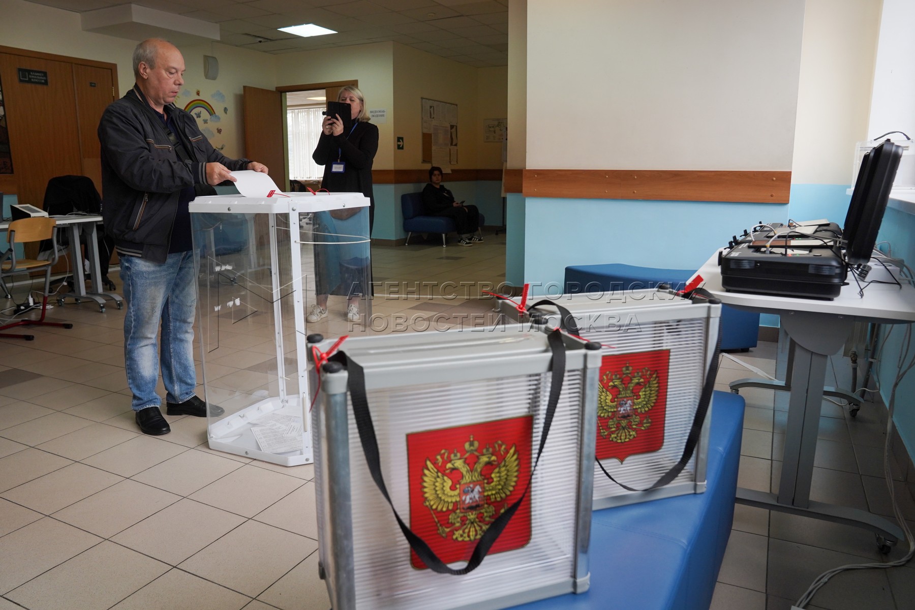 Работа участков для голосования в Москве на выборах мэра столицы 8 сентября 2023г...