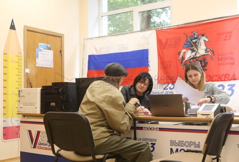 • Описание: Работа участков для голосования в Москве на выборах мэра столицы 8 сентября 2023года.