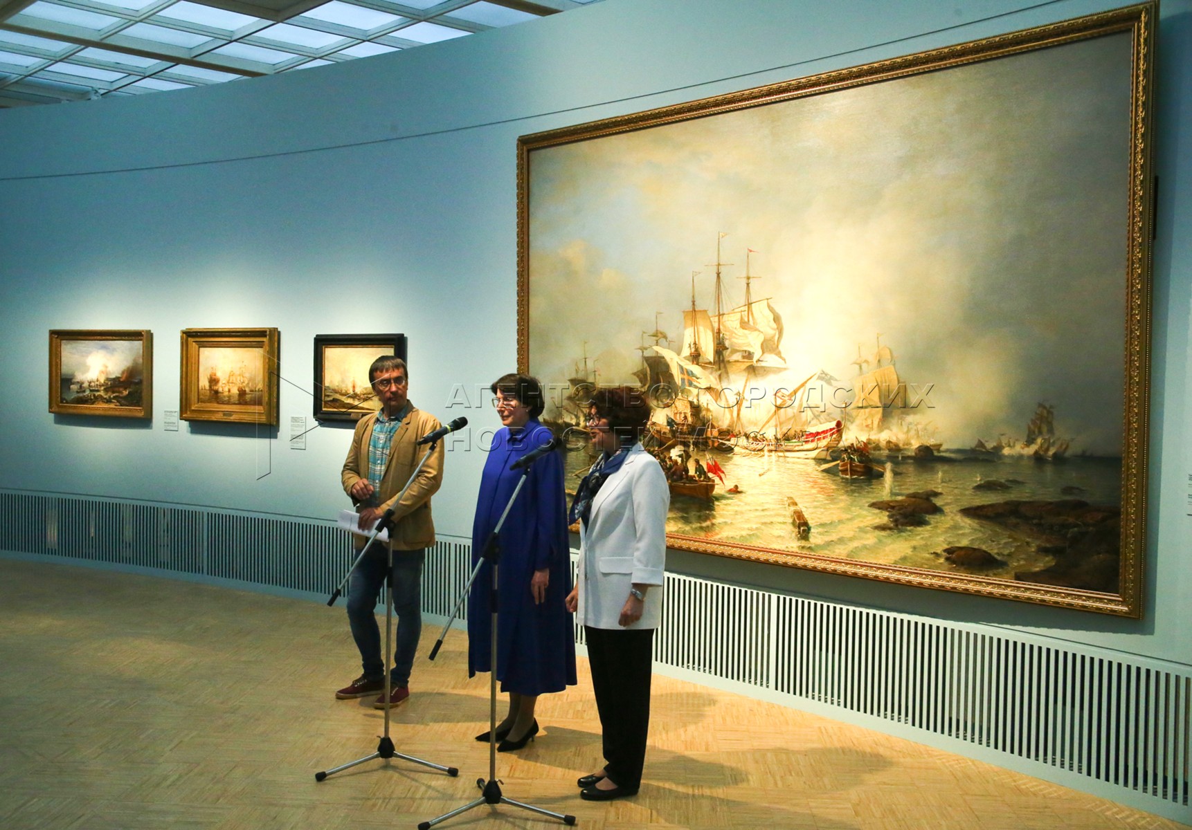 - Описание: Заместитель генерального директора Третьяковской галереи по научной работе Татьяна Карпова (в центре) во время предпоказа выставки «Алексей Боголюбов. К 200-летию со дня рождения» в Инженерном корпусе Государственной Третьяковской галереи.