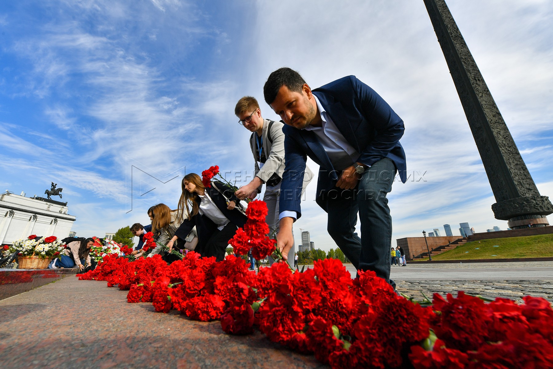 Возложение цветов у стен Музея Победы с участием атлетов, представляющих олимпийс...