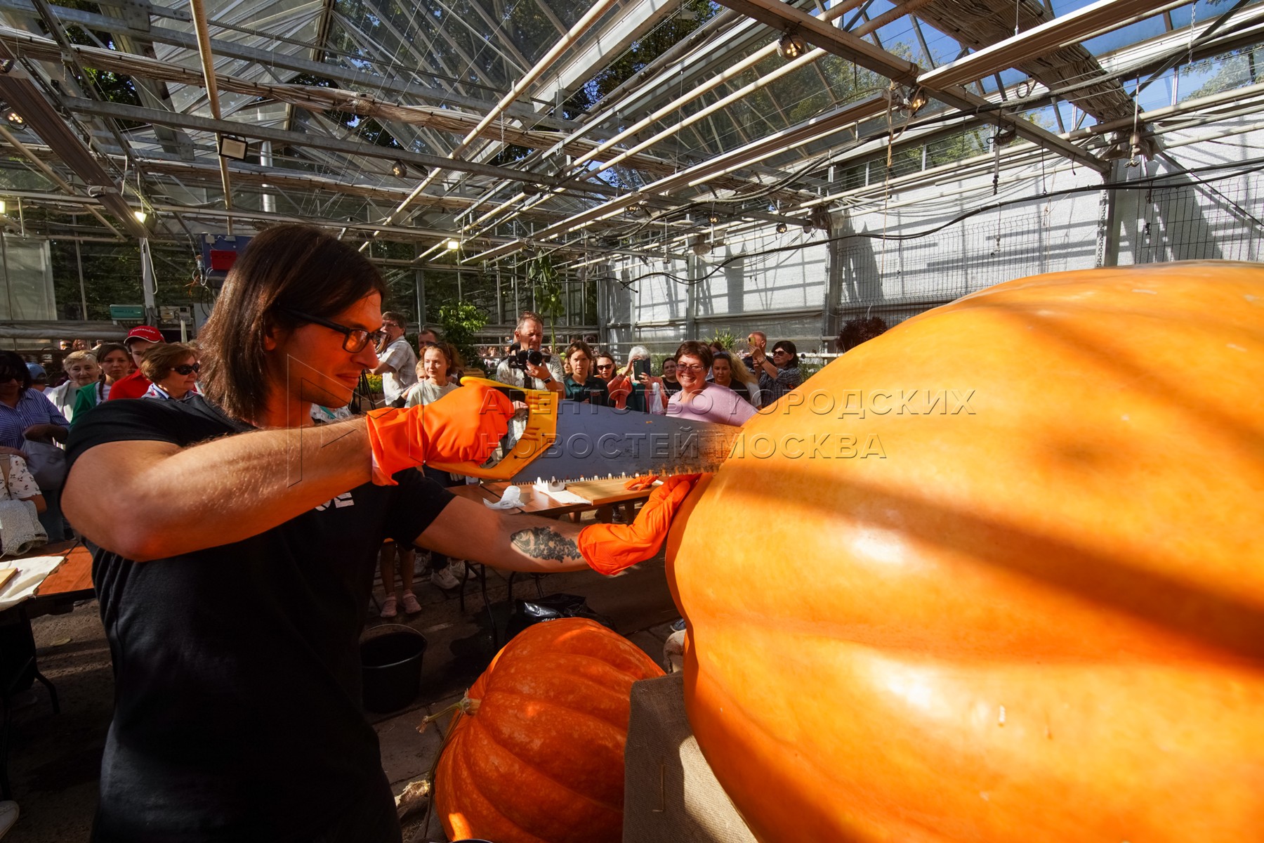 Торжественное вскрытие самых больших тыкв России в ботаническом саду МГУ «Аптекарский огород».