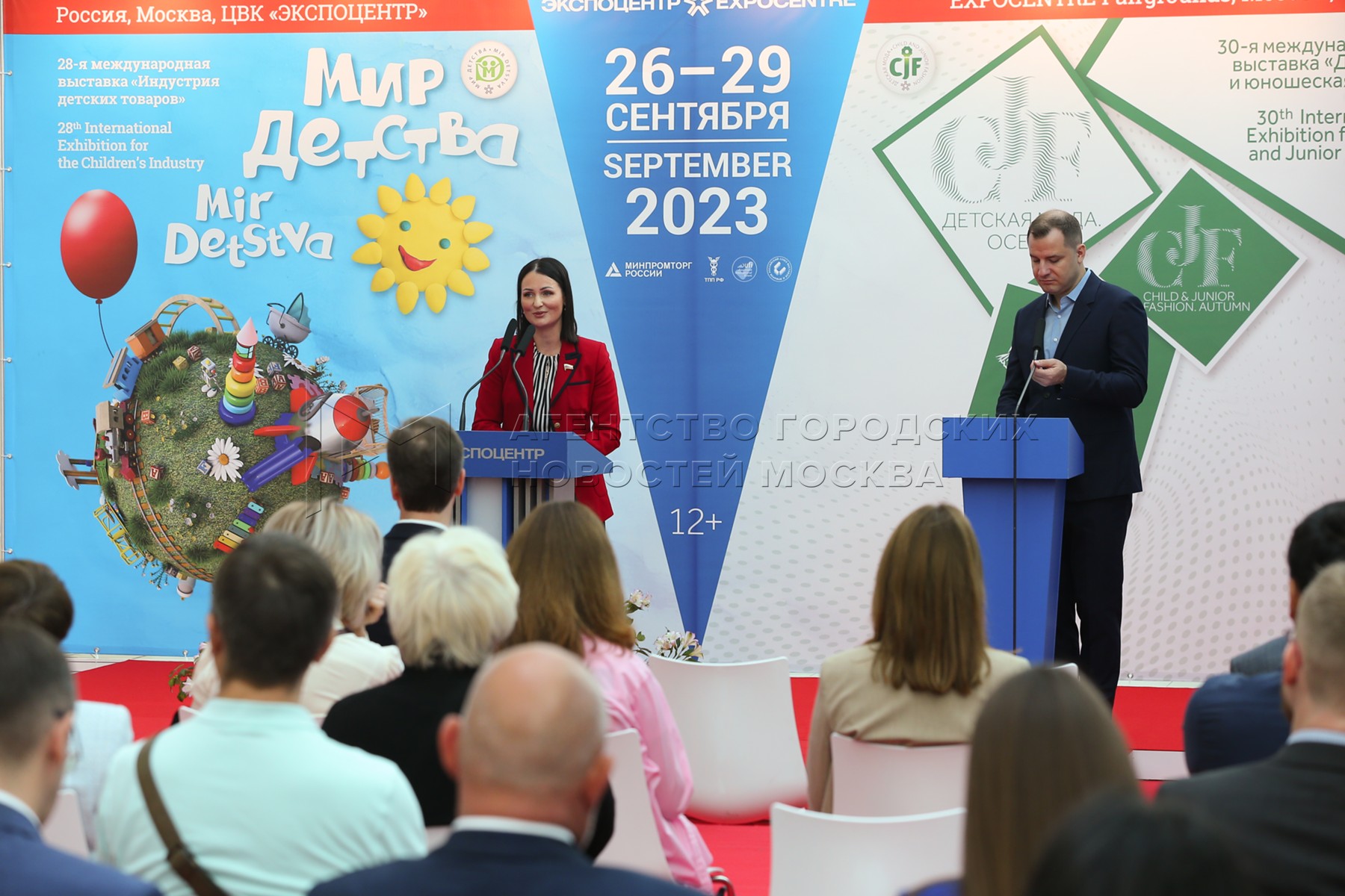 Открытие выставок индустрии детских товаров «CJF – Детская мода – 2023. Осень» и «Мир детства – 2023» в Центральном выставочном комплексе «Экспоцентр».