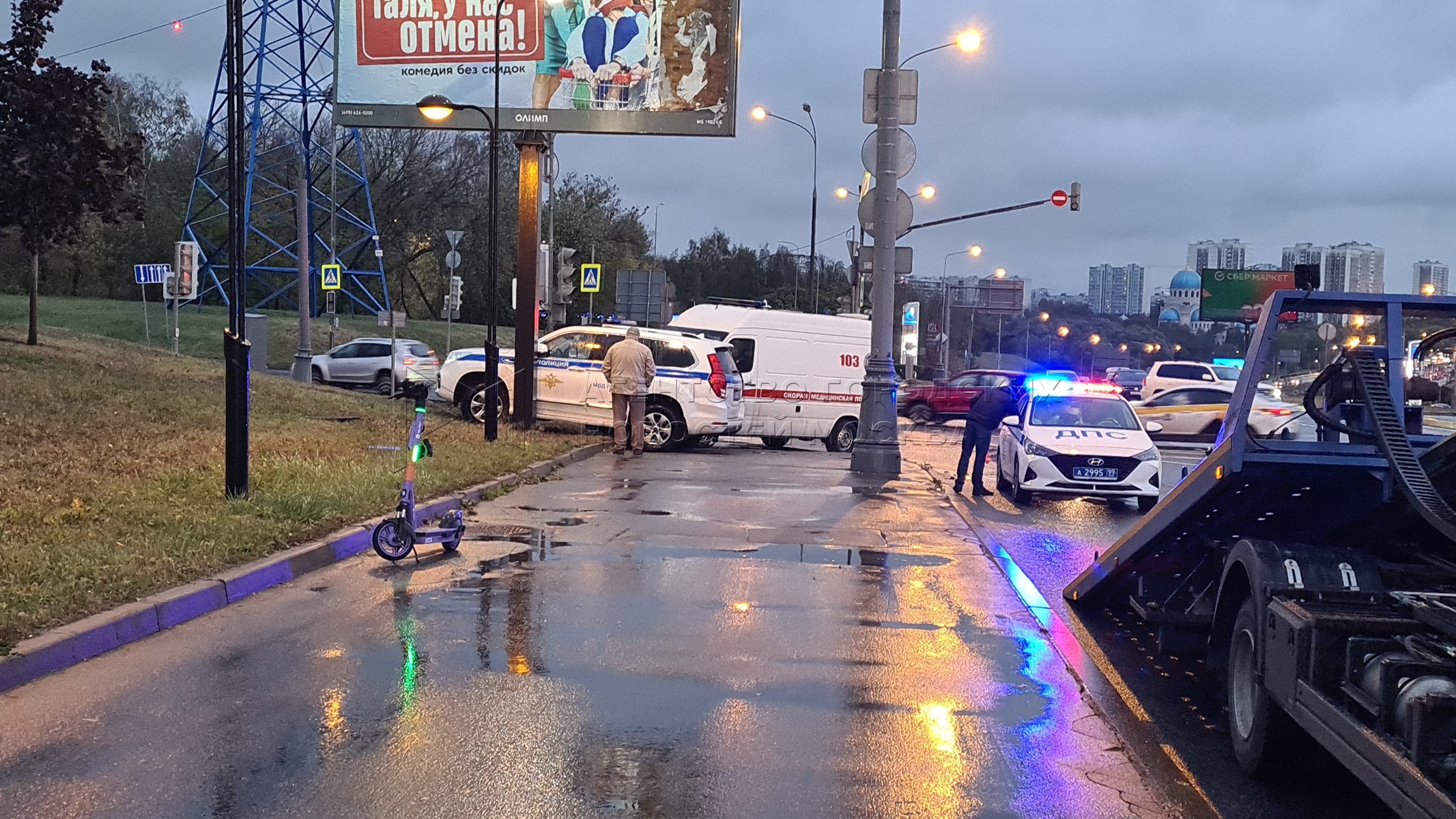 • Заголовок: Последствия столкновения автомобилей полиции и скорой помощи на Каширском шоссе