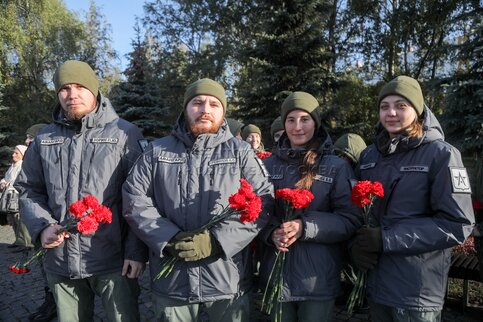 Акция «Цветы Победы» у памятника москвичам и бойцам народного ополчения, приуроченная к 82-й годовщине формирования Московского народного ополчения.