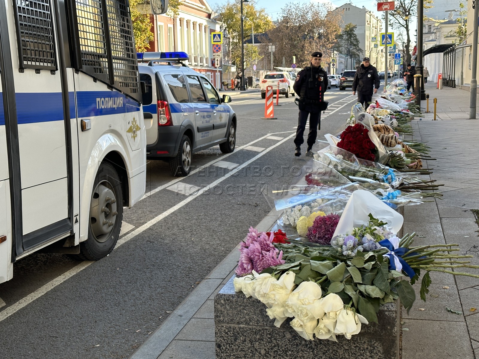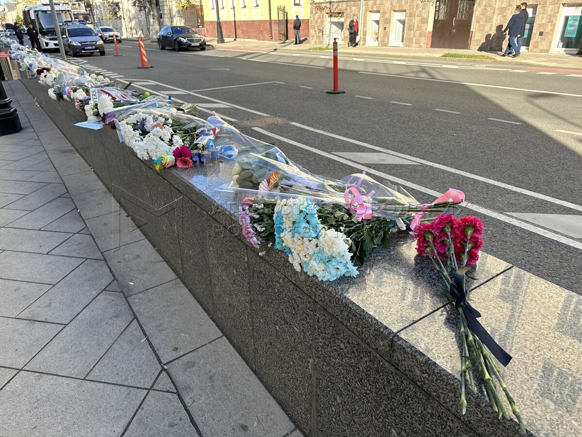 • Заголовок: Цветы, свечи и мягкие игрушки у здания посольства Израиля в Москве