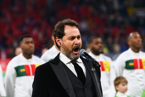 Оперный певец Ильдар Абдразаков во время выступления на товарищеском матче по фут...