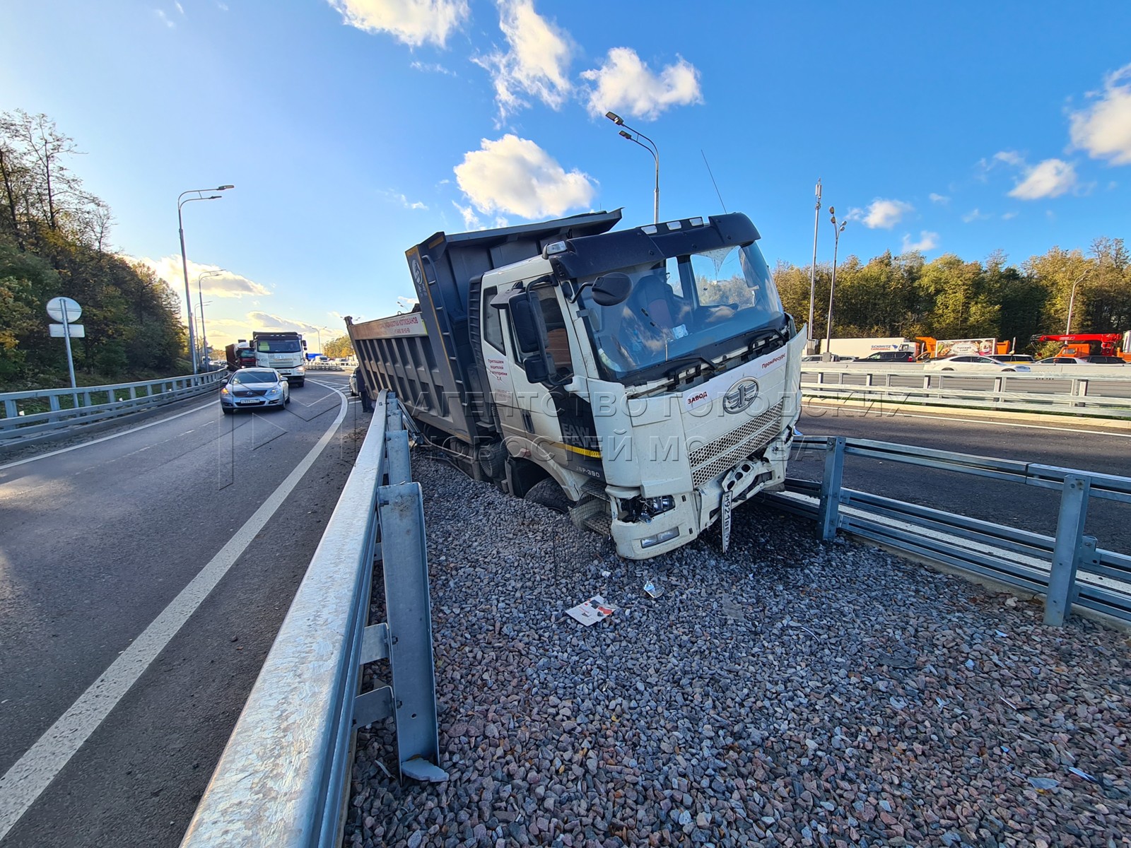 • Описание: Последствия ДТП с участием самосвала на МКАД в районе ул. Липецкая.