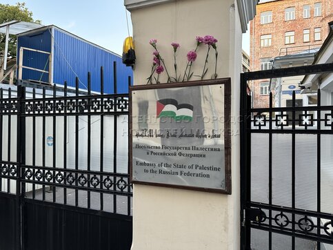 • Заголовок: Цветы, свечи и мягкие игрушки у посольства Палестины в Москве