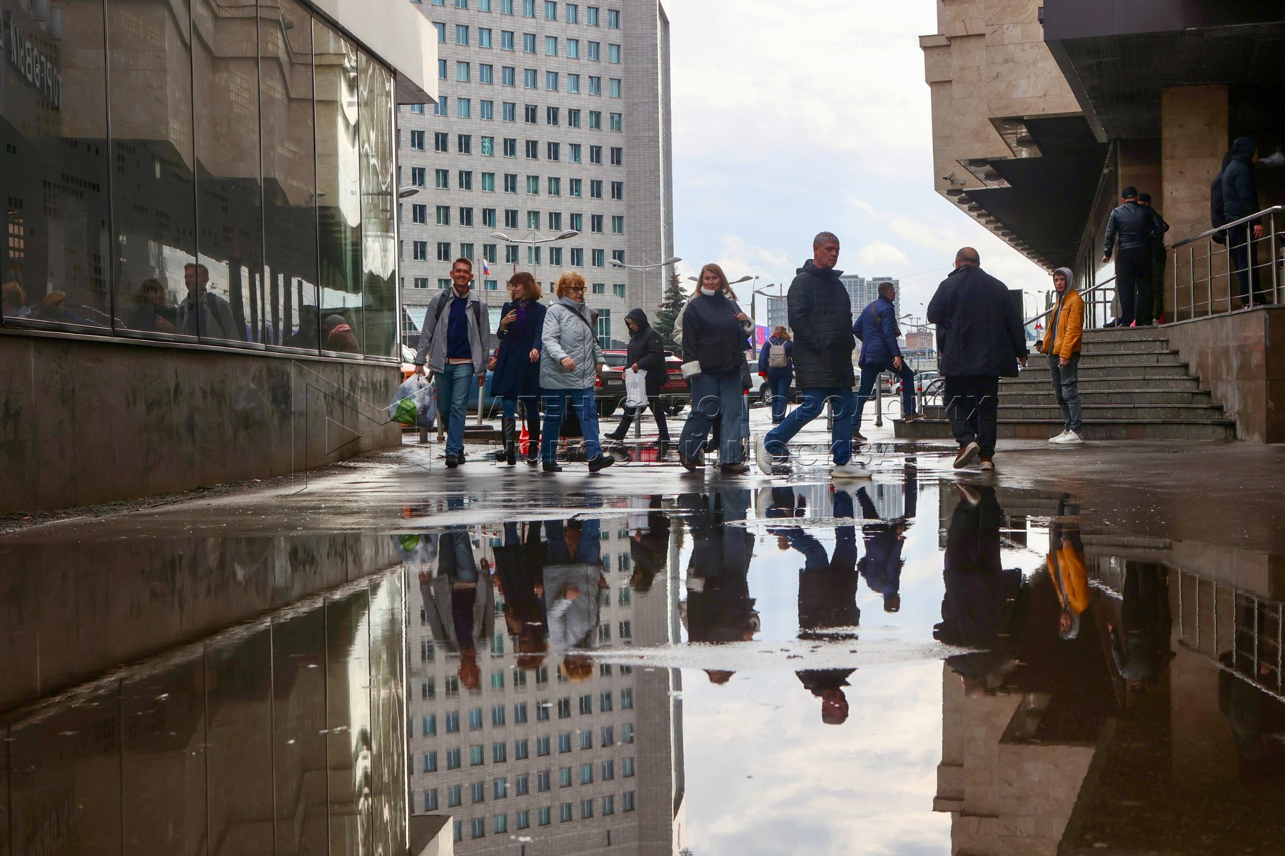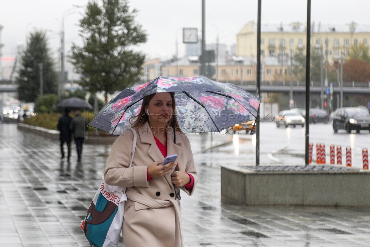 • Описание: Дождливая погода в Москве 16 октября 2023 года.