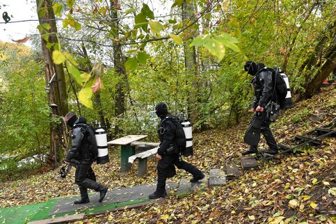 Тренировка водолазов из ОМОН «Меч» Главного управления Росгвардии по Москве.
