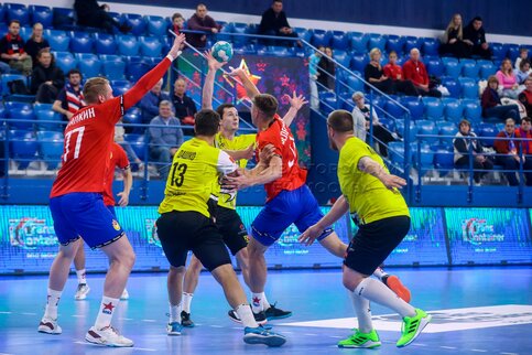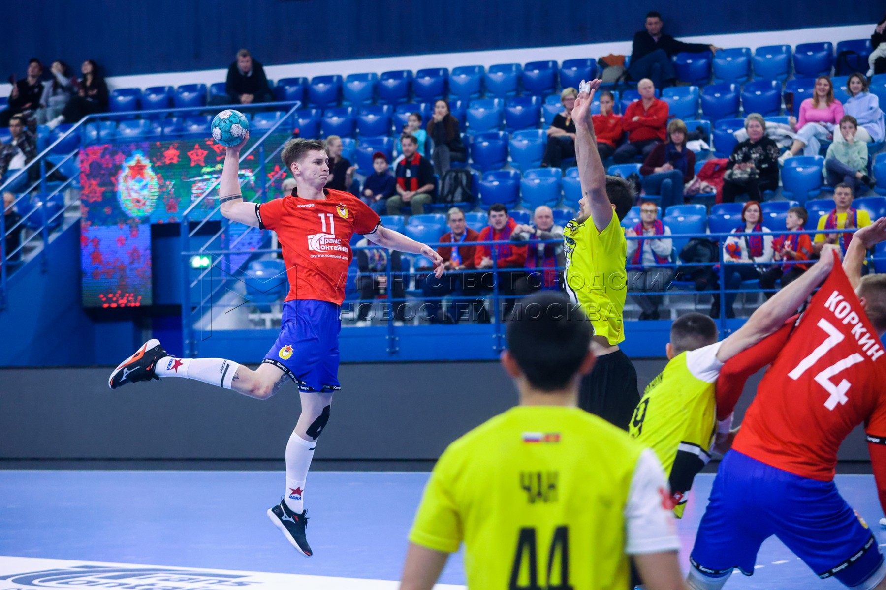 Матч Суперлиги по гандболу между ЦСКА (Москва) и СКИФ (Краснодар) на волейбольной...